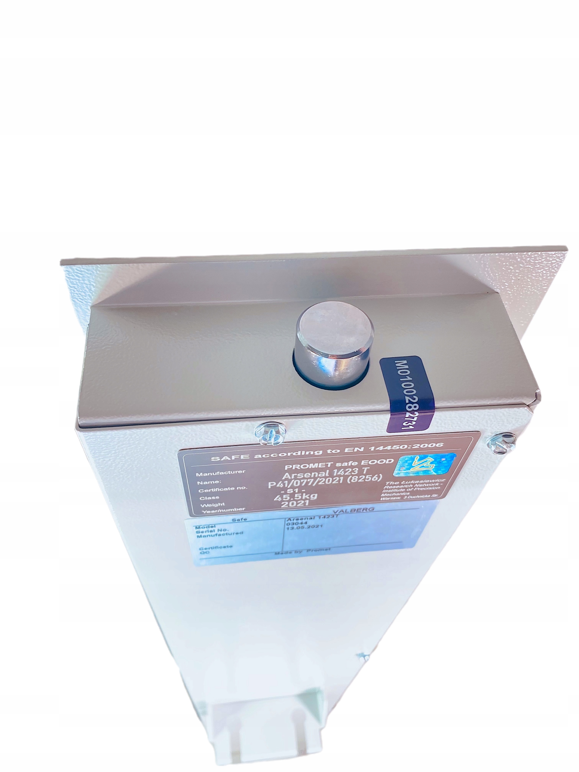 Клас S1, сертифікований Інститутом точної механіки. Кожен сейф містить паспортну табличку, яка підтверджує відповідність сейфа стандарту PN-EN14450 і класу S1.