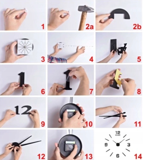 - Годинник кріпиться за допомогою самоклеючої стрічки. Стрічка знаходиться на звороті кожного предмета.
