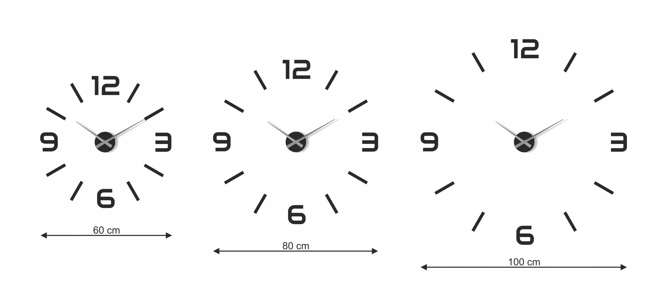 - Цифри/смуги годинників, приклеєні двостороннім монтажним скотчем, щоб ви могли легко приклеїти елементи до стіни