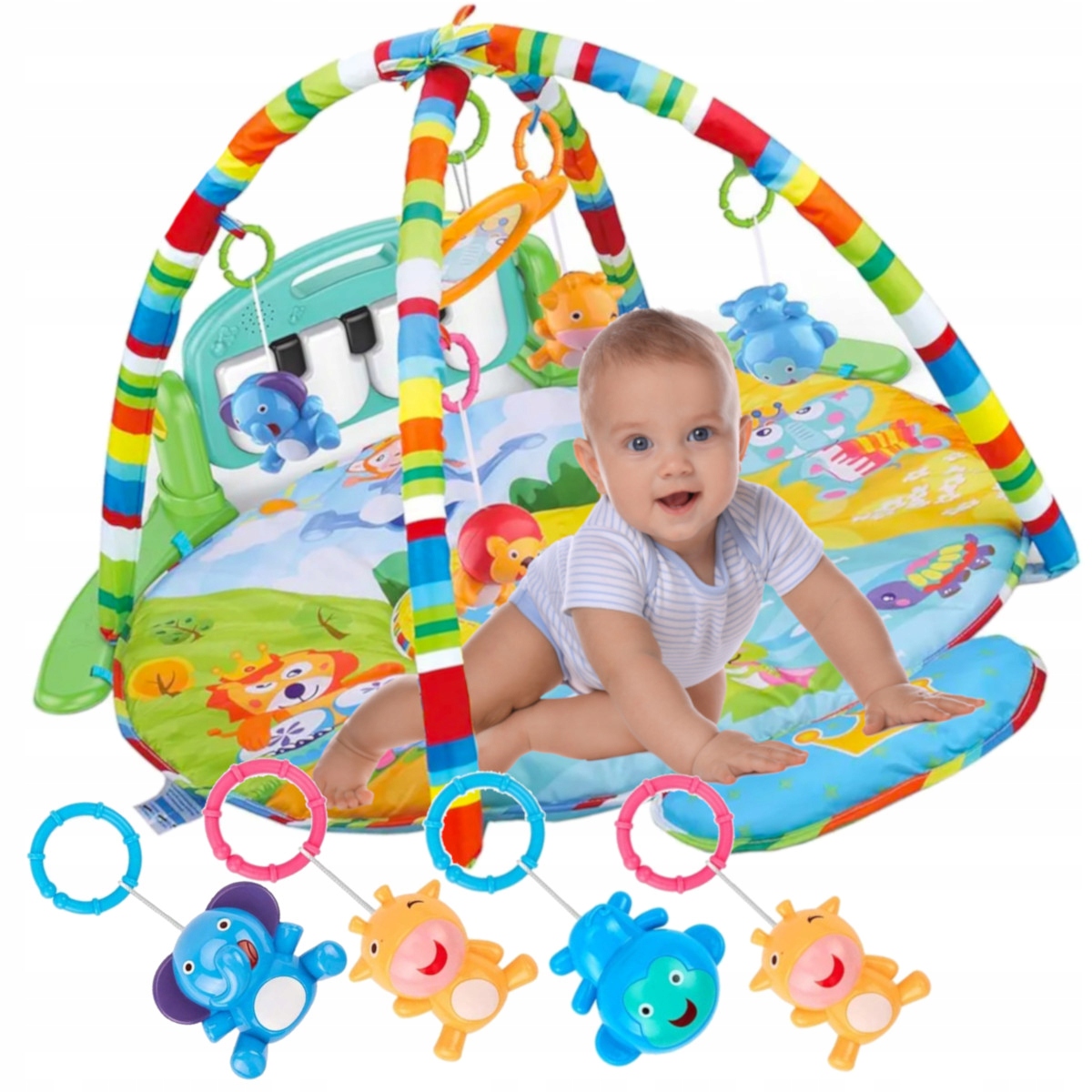 ВЕЛИКИЙ НАВЧАЛЬНИЙ КИЛИМОК З ПІНОМ 3В1 ІНТЕРАКТИВНІ КРУГЛІ ПІДВІСНІ ІГРАШКИ
