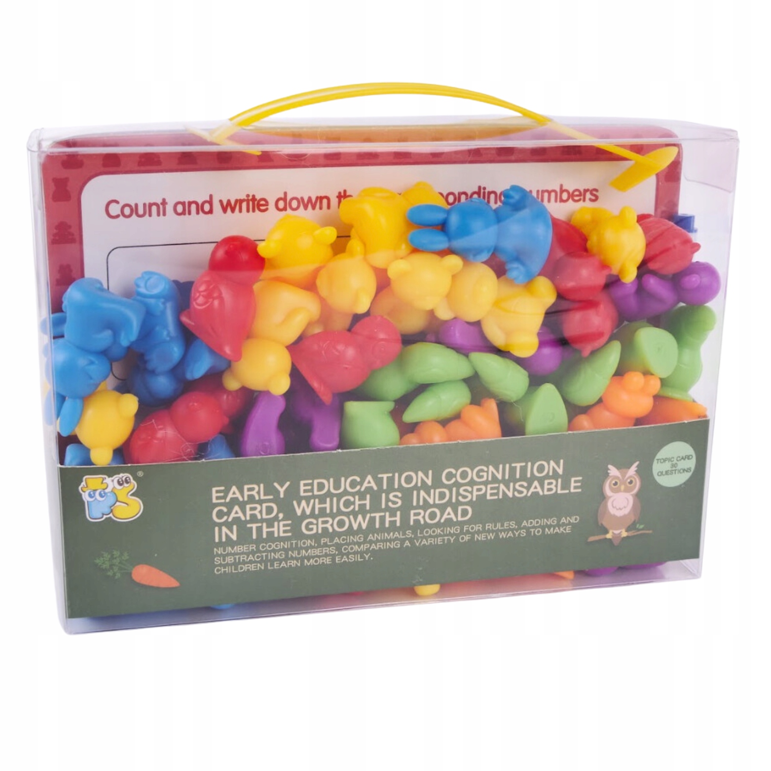 Набір включає елементи сортування відповідно до різних категорій , які розробляють логічне мислення та організацію. Картки з питаннями дозволяють навчитися підрахунку, розвитку математичних навичок.