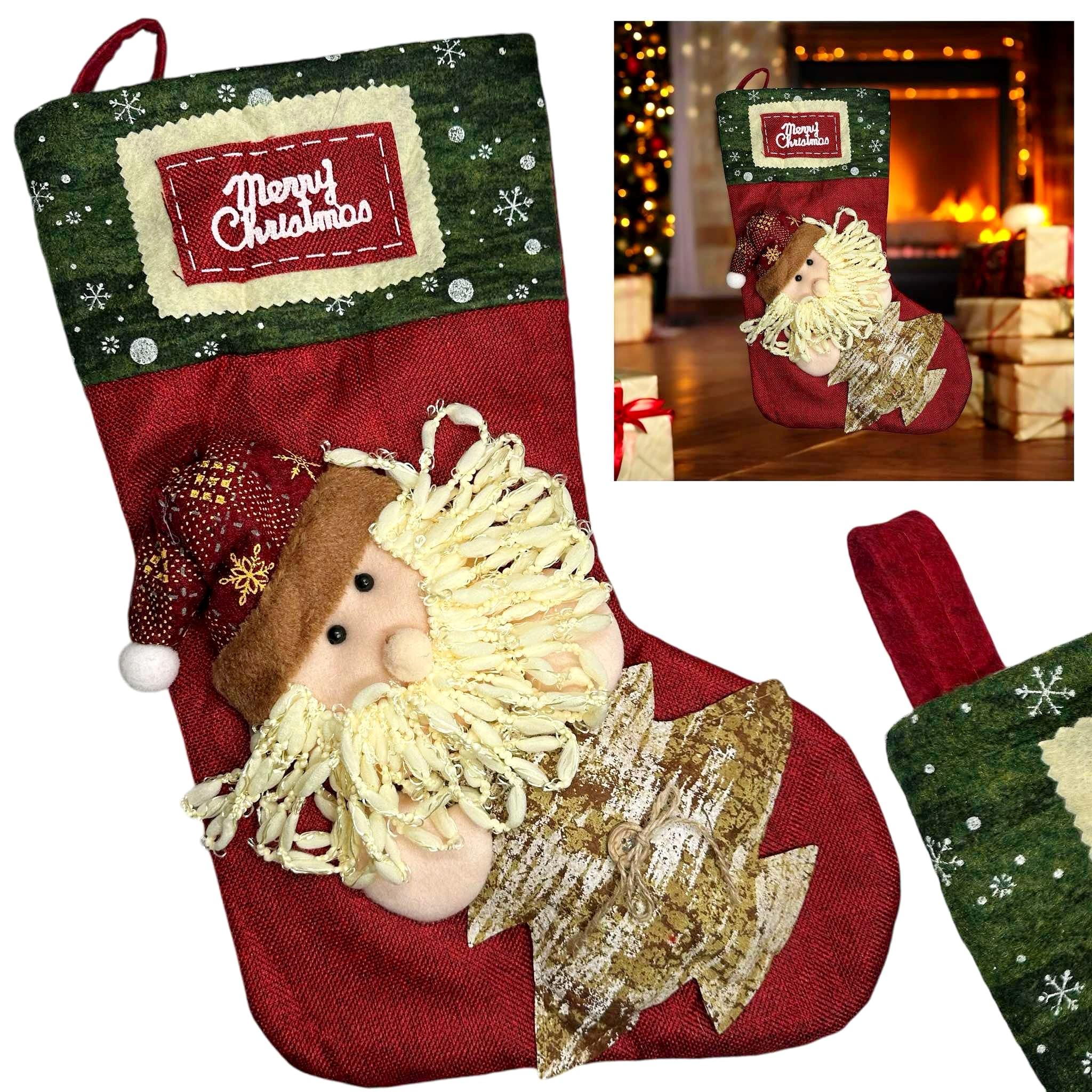 ВЕЛИКИЙ НОВИЧНИЙ НОСОК ДЛЯ ПОДАРУНКІВ КАМІН 50см ВЕТЛЬ 3D ДІД МОРОЗ