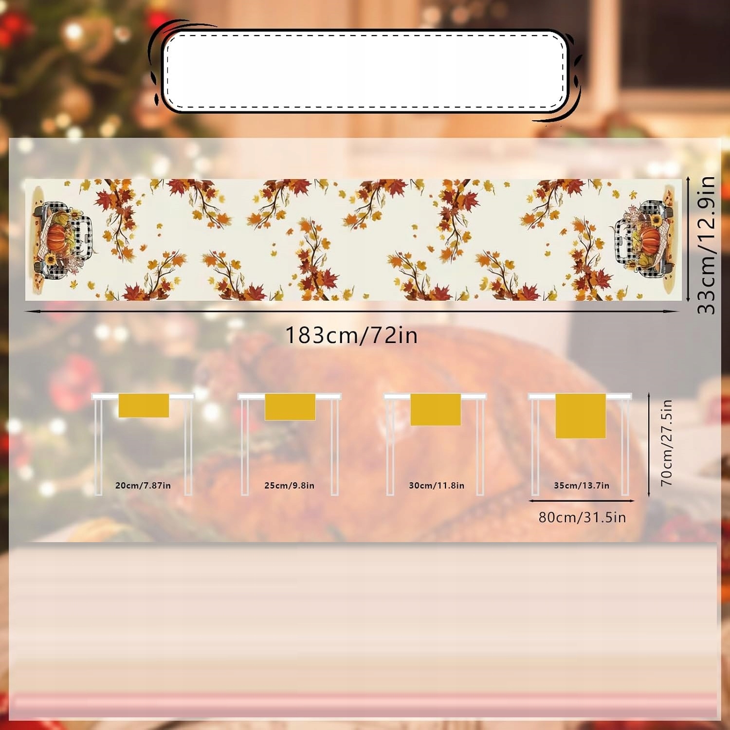 Стильний осінній доріжок довжиною 183 см з мотивом кленового листя створить теплу та затишну атмосферу у вашому інтер'єрі. Ідеально підходить для осінніх вечірок, вечерь і декорацій на Хелловін, він підкреслює чарівну атмосферу цього сезону. Ніжні кольори та візерунки листя у відтінках помаранчевого, червоного та золотого чудово пасуватимуть до інших осінніх прикрас.