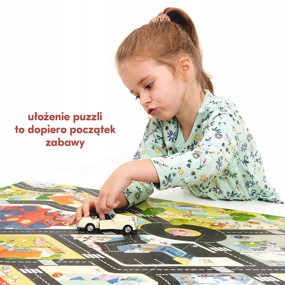 Величезні пазли для підлоги створюють карту міста з багатьма дорогами, якими можна їздити на іграшкових машинках.