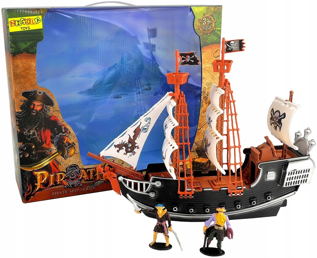ВЕЛИКИЙ ПІРАТСЬКИЙ КОРАБЕЛЬ 37см ВІТРИЛЬНИК + ПІРАТИ 1740
