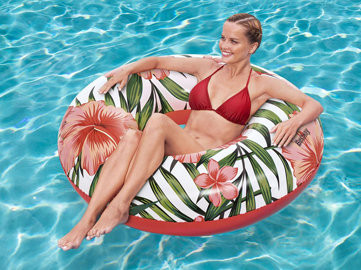 Надувне кільце для плавання Bestway Tropical дозволить чудово відпочити в спекотний день. Масивне широке колесо з міцного ПВХ матеріалу забезпечує комфортне використання. Плавальне кільце має клапан, який захищає від незапланованого, небажаного скачування повітря. Набір додатково оснащений ремонтною латкою.