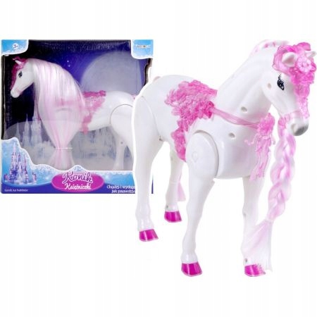Інтерактивний кінь Принцеси льоду відправить кожну ляльку в чарівну подорож. Чи вже час подорожувати? Сьогодні Крижана Принцеса вирушає до Крижаної Землі зі своїм райдужношерстим конем, щоб допомогти підготуватися до великого свята. Завдяки коні Крижана принцеса прибуде вчасно. Довге кінське волосся, ви можете укладати його як завгодно. Кінь ходить і видає звуки справжнього коня. Має світло-рожеве сідло та упряж.