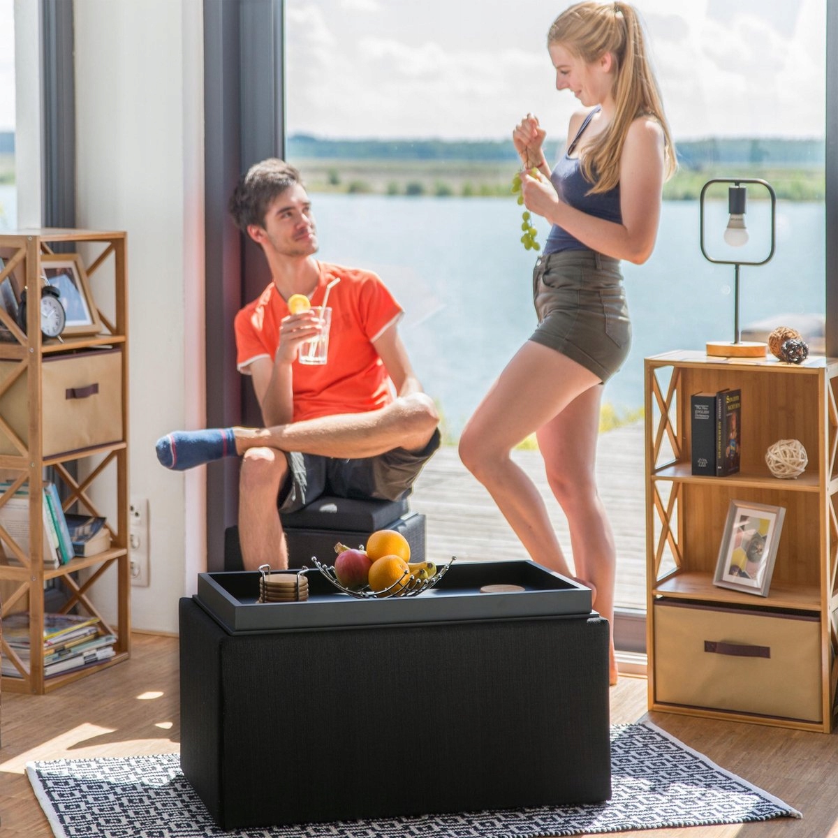 Завдяки цьому дивану ви можете швидко створити місце для зберігання у вітальні, дитячій кімнаті чи ванній кімнаті. Крім того, лавка з місцем для зберігання дуже практична, тому вашим гостям завжди буде комфортно розташуватися. Багатофункціональна кришка не тільки закриває відсік для речей, але і служить підносом. Переверніть кришку та поставте її назад на лавку, утворюючи маленький столик для невеликої страви чи закуски.