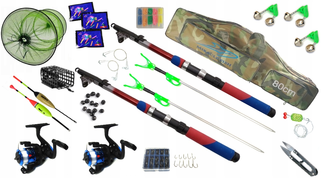 ВЕЛИКИЙ РИБАЛЬСЬКИЙ НАБІР З ЧОХЛОМ 2X FISHING ВУДКА 2X УНІВЕРСАЛЬНА КОТУШКА