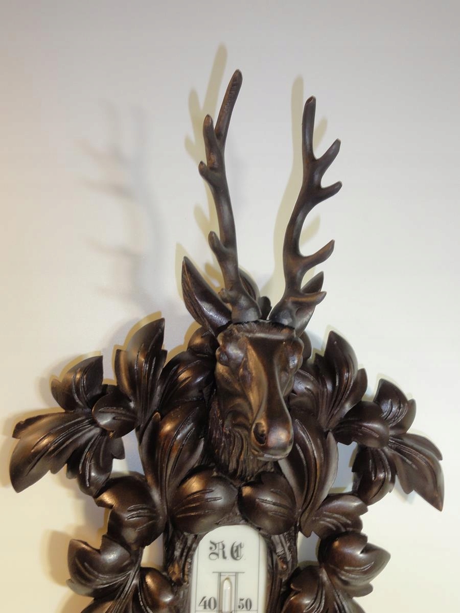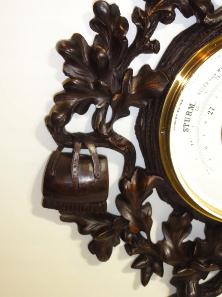 *великий різьблений барометр із термометром у мисливському стилі,