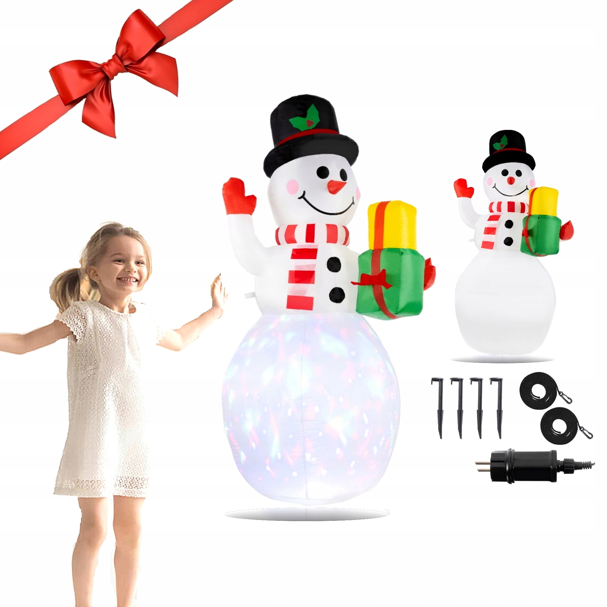 ВЕЛИКИЙ РІЗДВЯНИЙ НАДУВНИЙ СНІГОВИК 155 СМ СВІТИТЬСЯ З РІЗДВЯНИМ ПОДАРУНКОМ