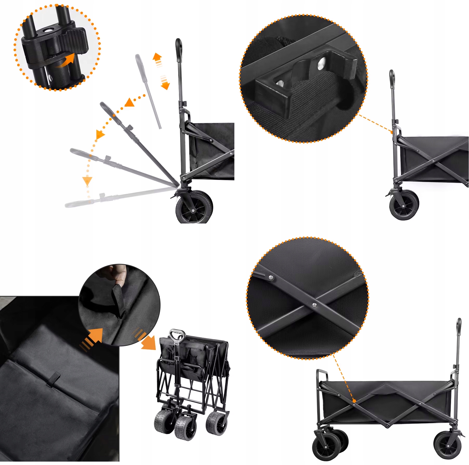 підйом до 200 кг гарантує, що ви можете взяти ще більш важкі предмети, такі як туристичний холодильник, пляжна парасолька або гриль, не боячись пошкодження візка.