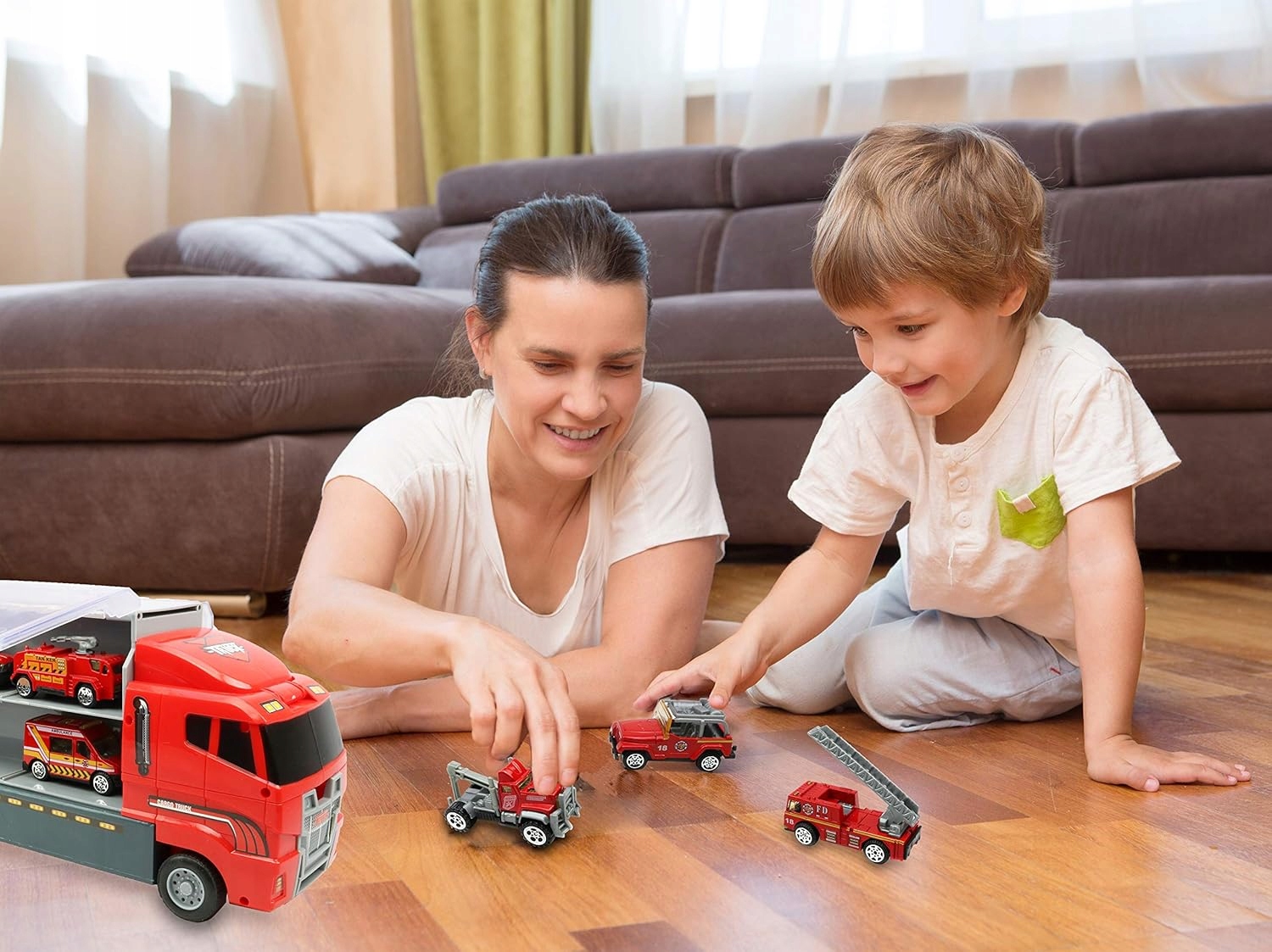 ✔ Набір іграшок пожежних вантажівок з картою: іграшки для пожежних машин для хлопчиків, візок має реалістичні звукові та світлові ефекти, через 4 кнопки у верхній частині візка, яку ваша дитина може бачити прохолодні світильники, приємну музику та почути звук старту транспортного засобу, Whistle. Чудовий подарунок на день народження, фестивалі та свят.