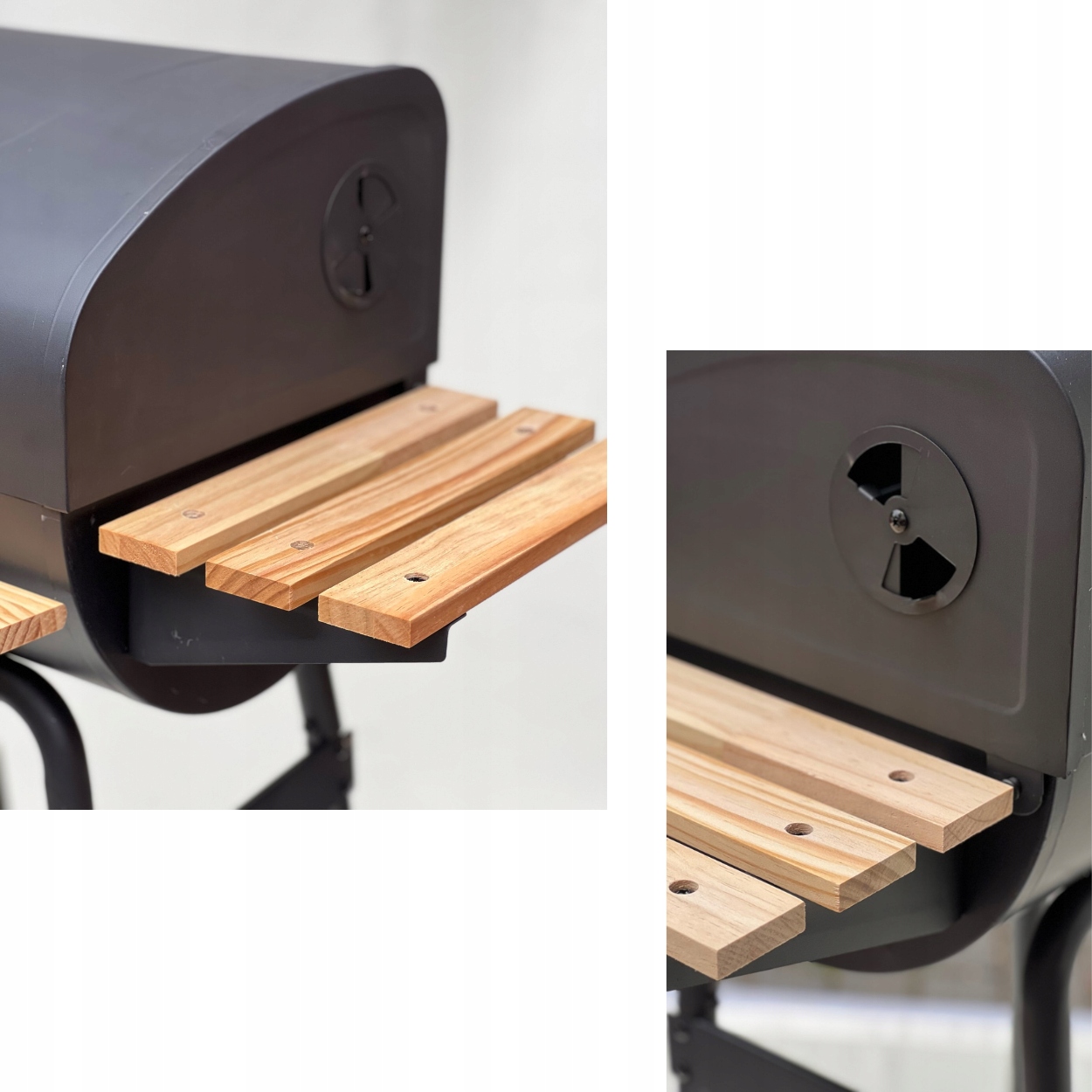 Чорна матова поверхня в поєднанні з теплом дерева робить гриль придатним навіть для найвибагливіших умов.