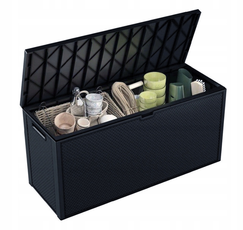 ВЕЛИКИЙ САДОВИЙ ЯЩИК, 280 Л СИДІННЯ, УНІВЕРСАЛЬНИЙ. ролики, встановлені в основі ящика. p>