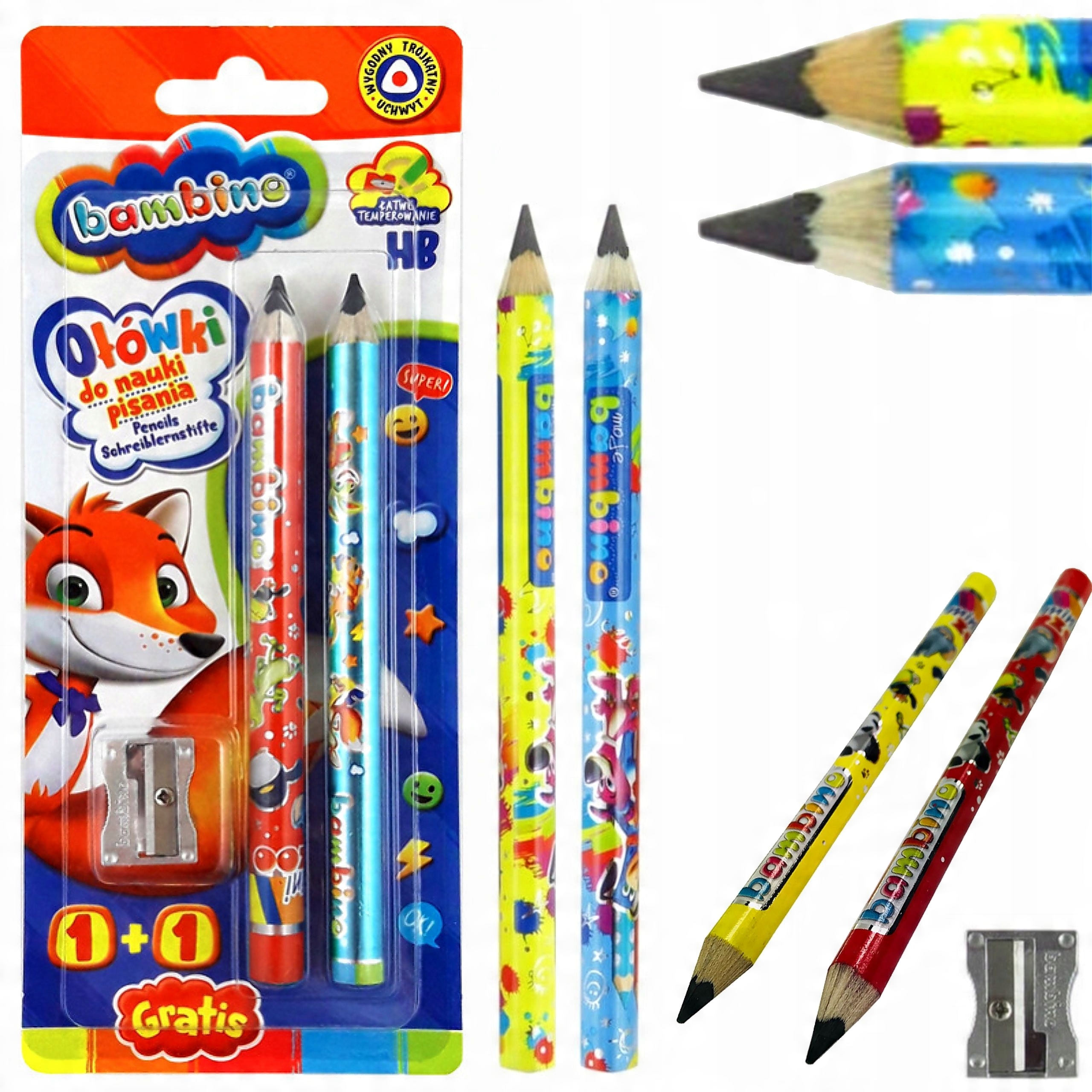 - Трикутний шкільний олівець Bambino 1+1 для навчання письма та точилка