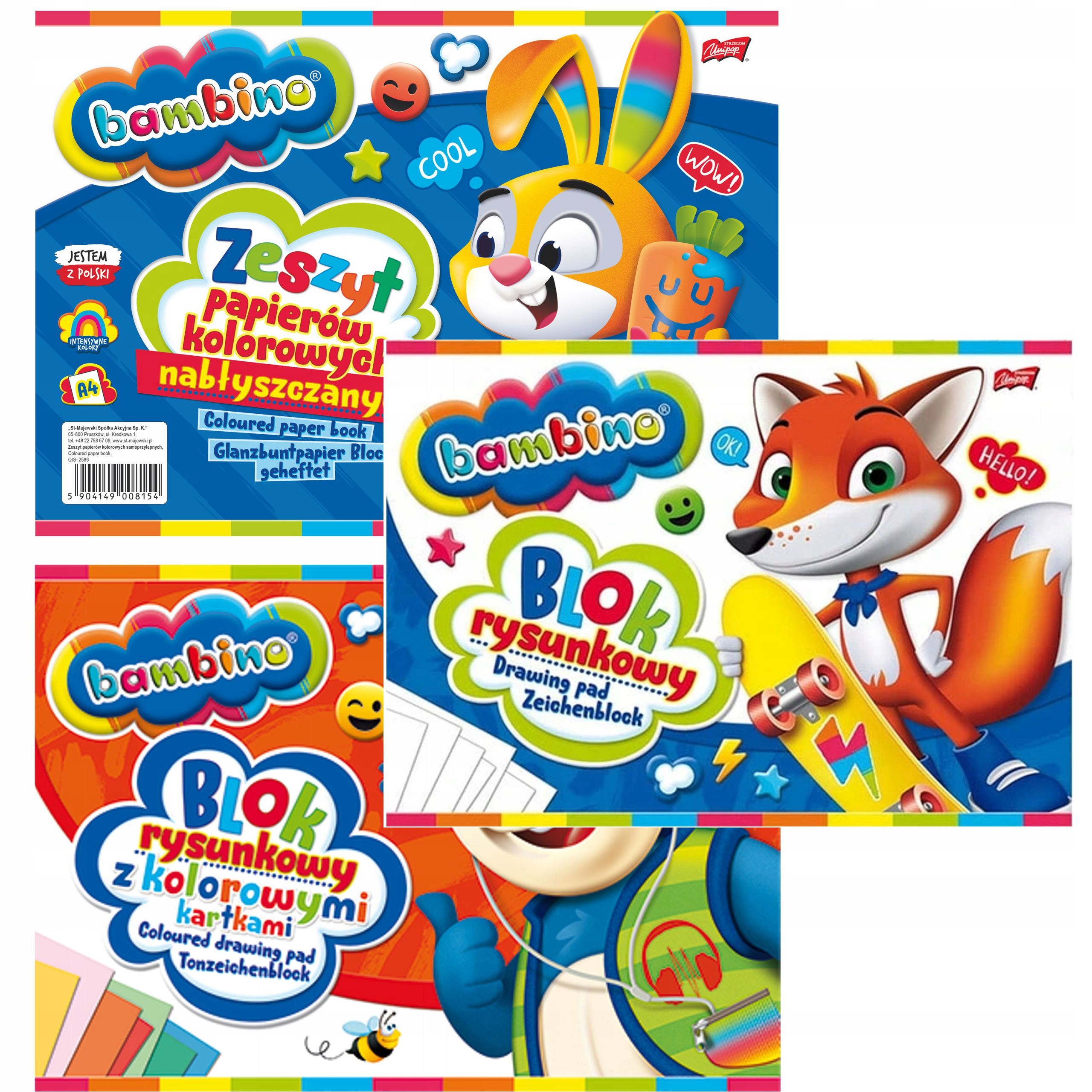 - Блокнот для малювання Bambino містить 20 аркушів білої крейди з щільністю 80 г/м2