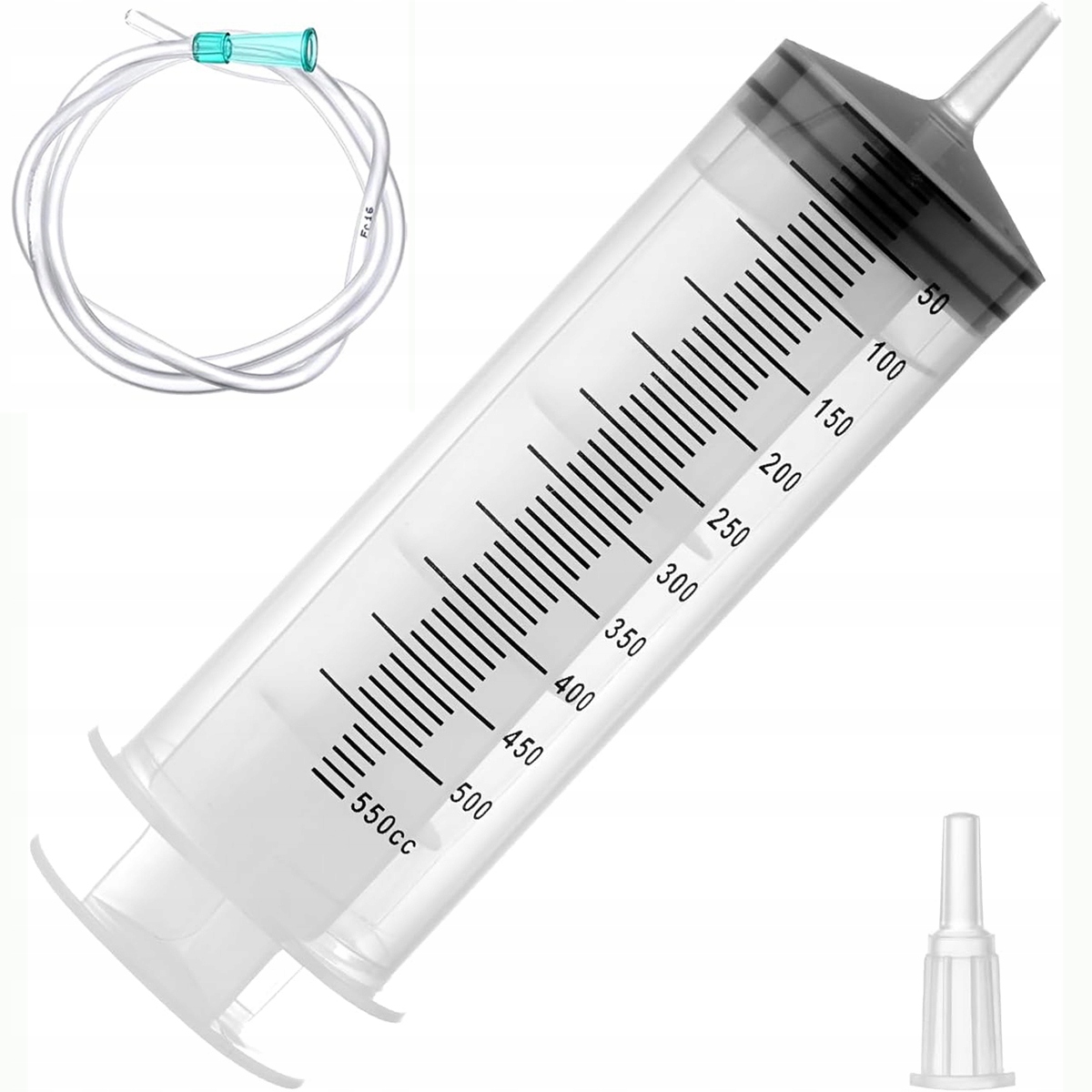 🔹Набір включає шприц на 500 мл, прозорий шланг довжиною 1 м, ковпачок для шприца та перехідник для голки. Адаптер з’єднує шприц із прозорим шлангом, забезпечуючи безпечне та гігієнічне з’єднання під час використання. Шприци індивідуально запечатані для безпеки та гігієни.