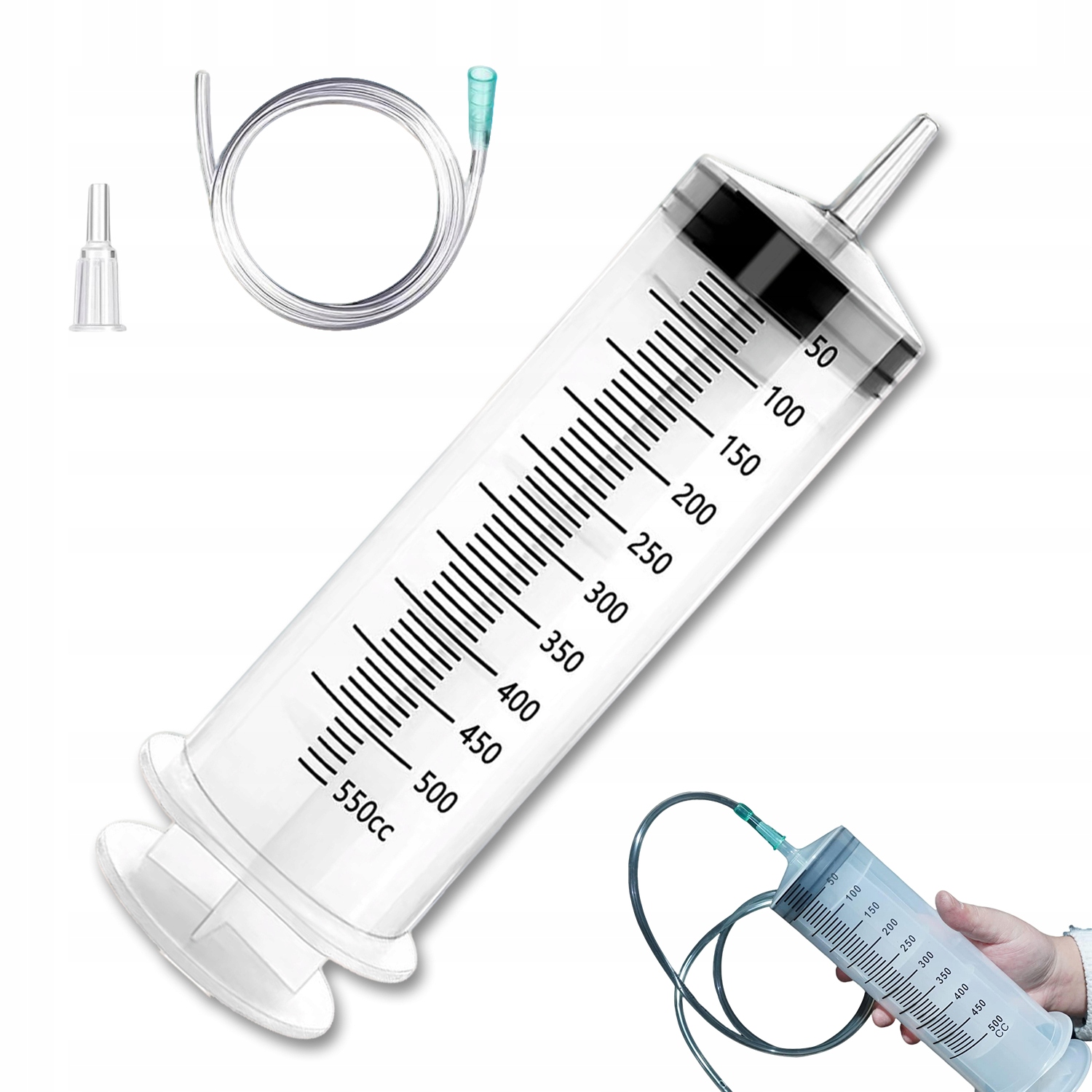 🔹Набір включає шприц на 500 мл, прозорий шланг довжиною 1 м, ковпачок для шприца та перехідник для голки. Адаптер з’єднує шприц із прозорим шлангом, забезпечуючи безпечне та гігієнічне з’єднання під час використання. Шприци індивідуально запечатані для безпеки та гігієни.