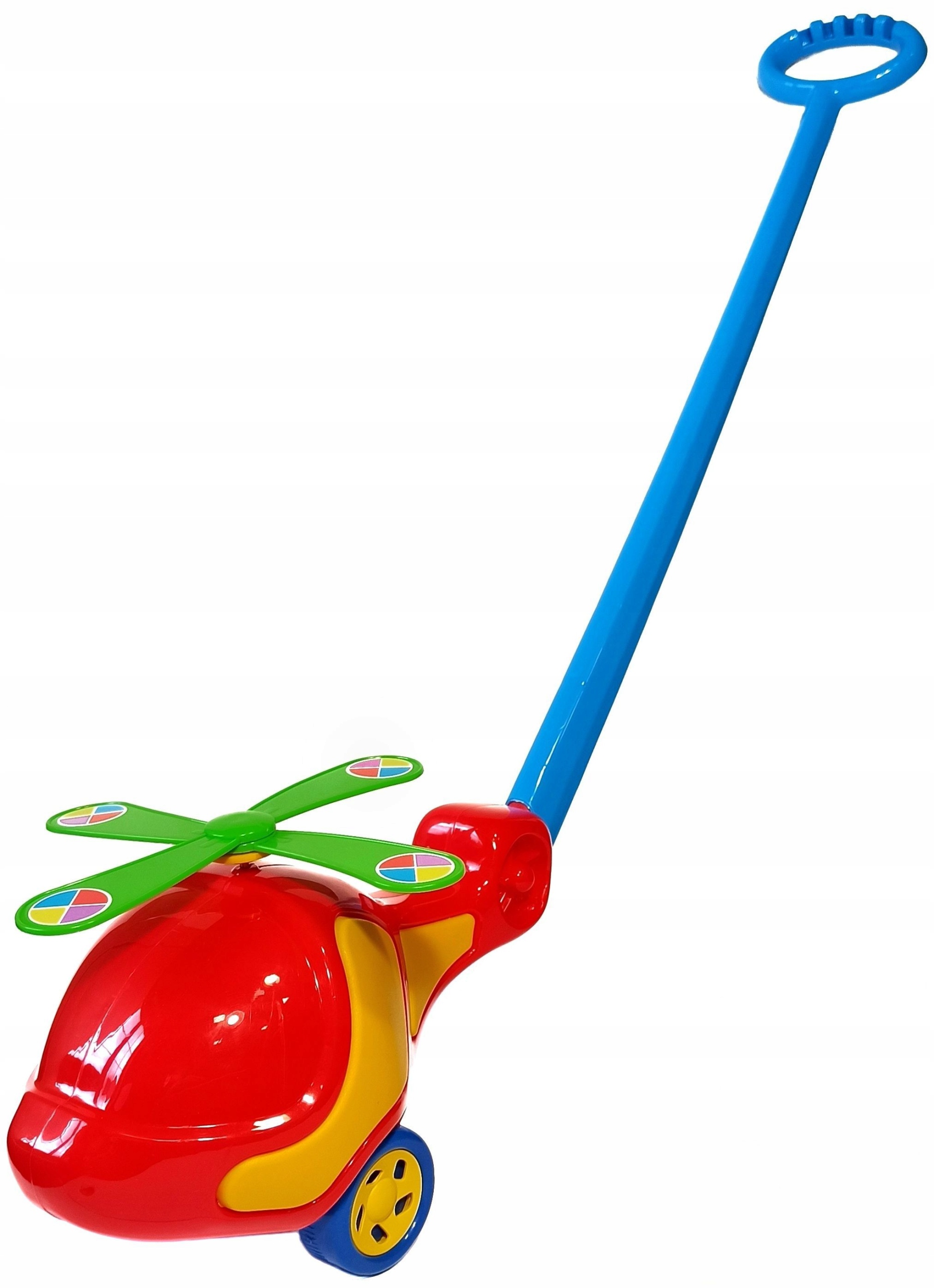 Красивий, великий гелікоптер-штовхач, виготовлений із сертифікованого та безпечного для дітей матеріалу в цікавих і привабливих кольорах.