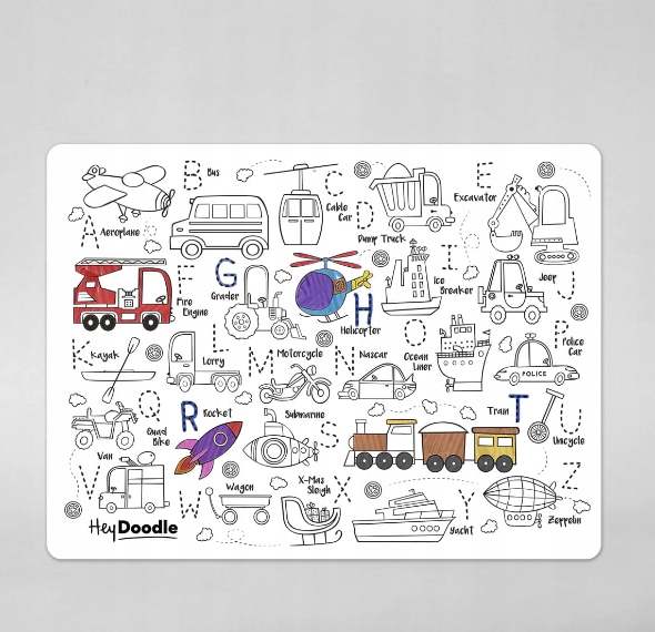 Великий силіконовий килимок для розмальовки А3 HeyDoodle ТРАНСПОРТ А3 + фломастери