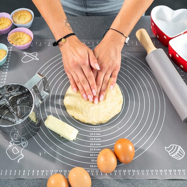 🎂 Робота з пісочним тістом: Дякую до протиковзкої поверхні, кондитерська дошка ідеальна для роботи з ніжним пісочним тістом. Не турбуючись про зміщення тіста, ви можете зосередитися на досягненні ідеальної консистенції.