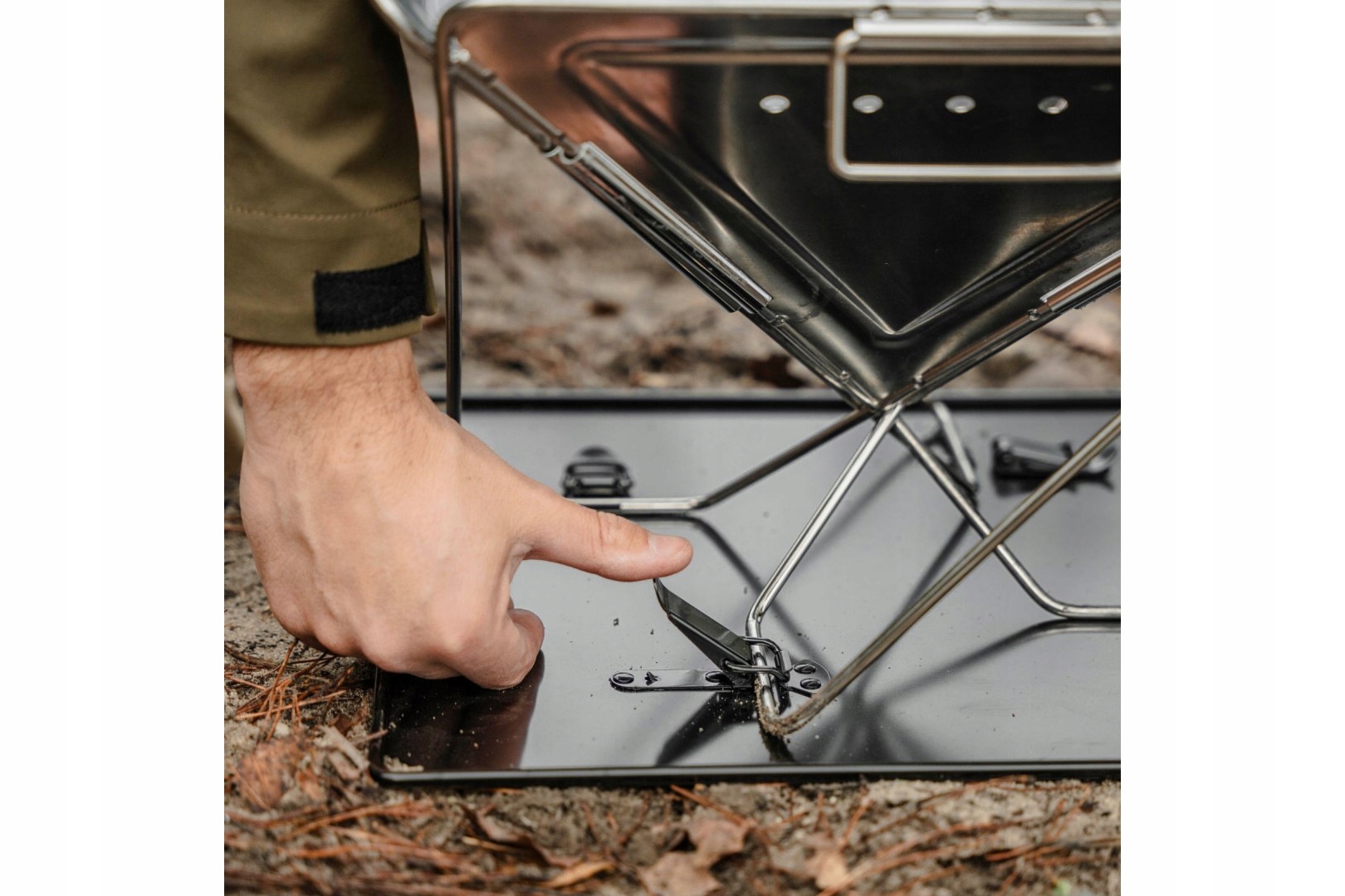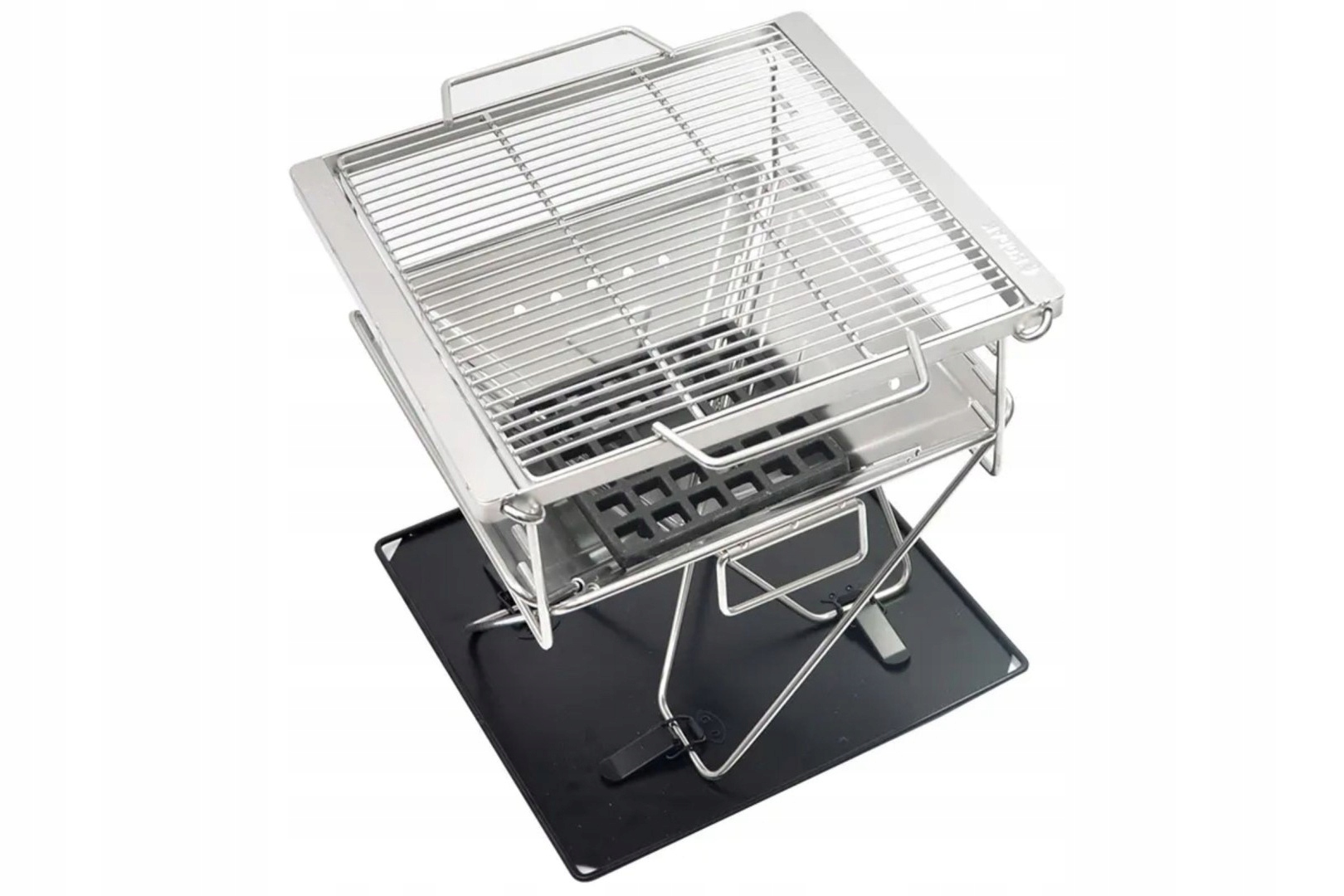 Вся конструкція гриля складається пласко і має міцні стінки, тому вогонь не розсіюється вітром. Все це досить високо над землею на чотирьох стійких ніжках.