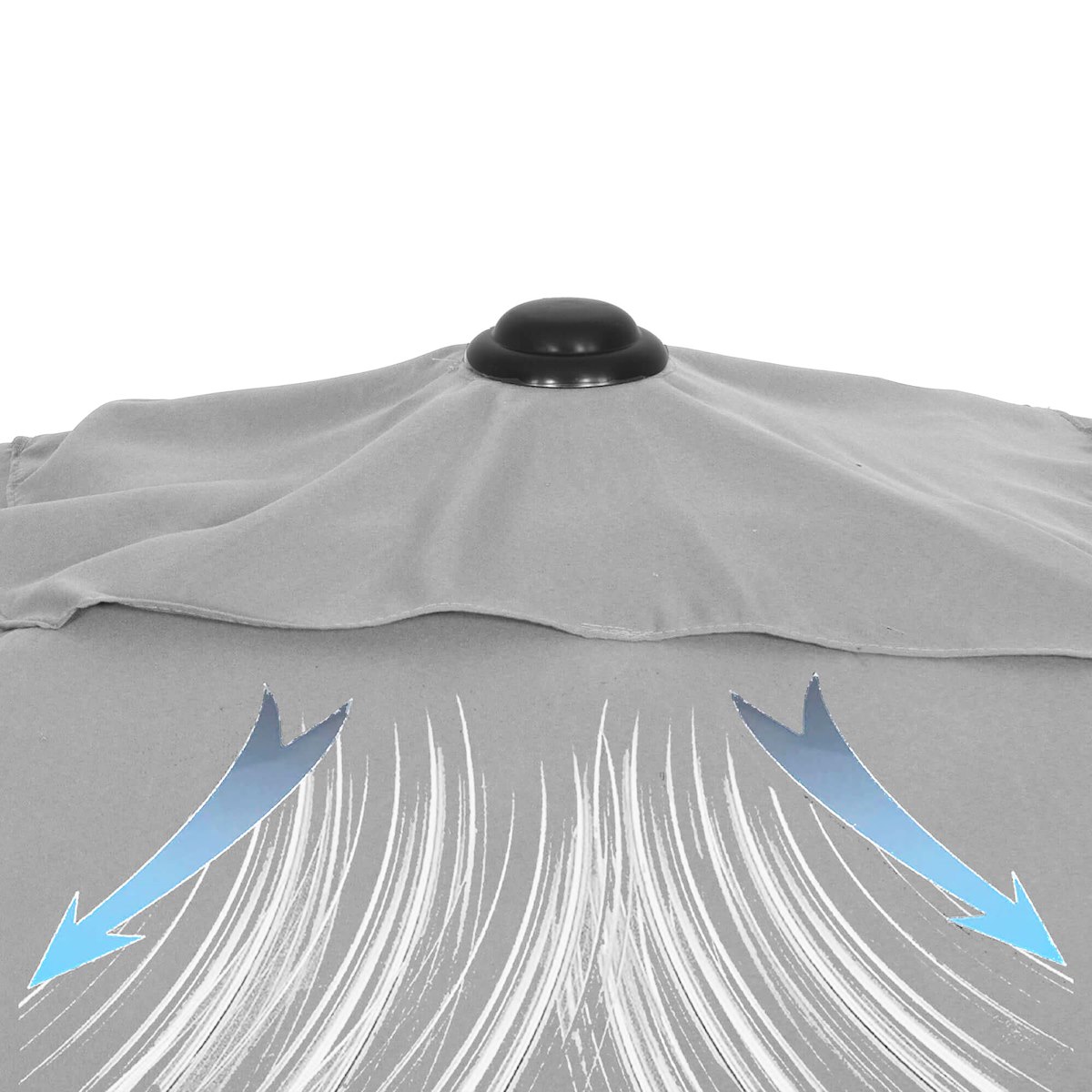 Перебування під укриттям від сонця - з парасолькою або вітрилом - може бути пов’язане з додатковим нагріванням і відсутністю циркуляції в безвітряні дні. Наша парасолька обладнана вентиляційним отвором у верхній частині купола, що однозначно підвищить комфорт використання, особливо якщо під парасолькою гратимуть найменші діти.