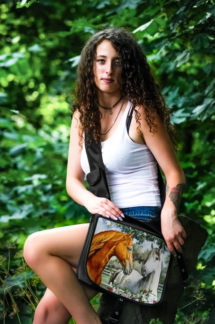 ГАРНА ВЕЛИКА СУМКА НА КЛАПАН А4 З ПРИНТОМ - КОНІ.