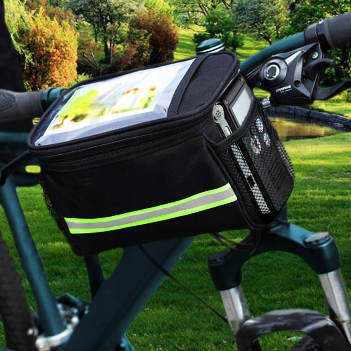 ✔️Багатофункціональна велосипедна сумка кріпиться на кермо. Він ідеально підходить для сховища під час подорожей, має цілих 4 відділення різного розміру. Ви можете легко сховати ключі, телефон, гаманець та інші речі, які вам знадобляться під час велосипедних подорожей!