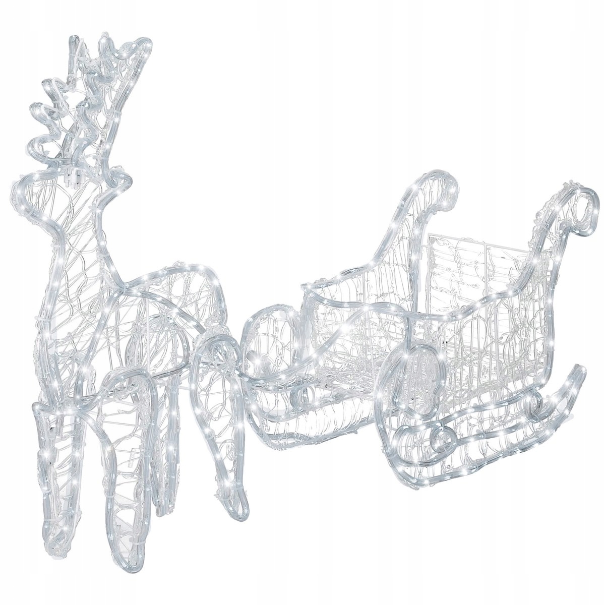 Міцна, гнучка кришка легкого ланцюга має товщину майже 9 мм і має клас IP44 це параметр, який вказує на те, що ви можете легко розмістити світлодіодних оленів як всередині, так і зовні будинку - в саду, на терасі, балконі. У набір також входять металеві кілочки, за допомогою яких можна прикріпити оленя і сани до землі. Стійка металева конструкція, забезпечує постійну форму інсталяції.