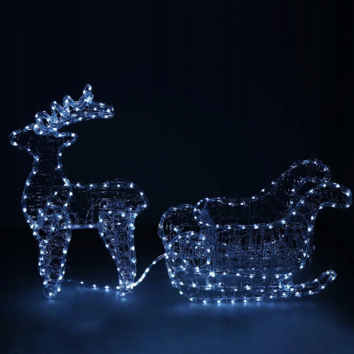 Великий сяючий олень із санями 312 світлодіодних ламп холодно-білих декоративних ламп