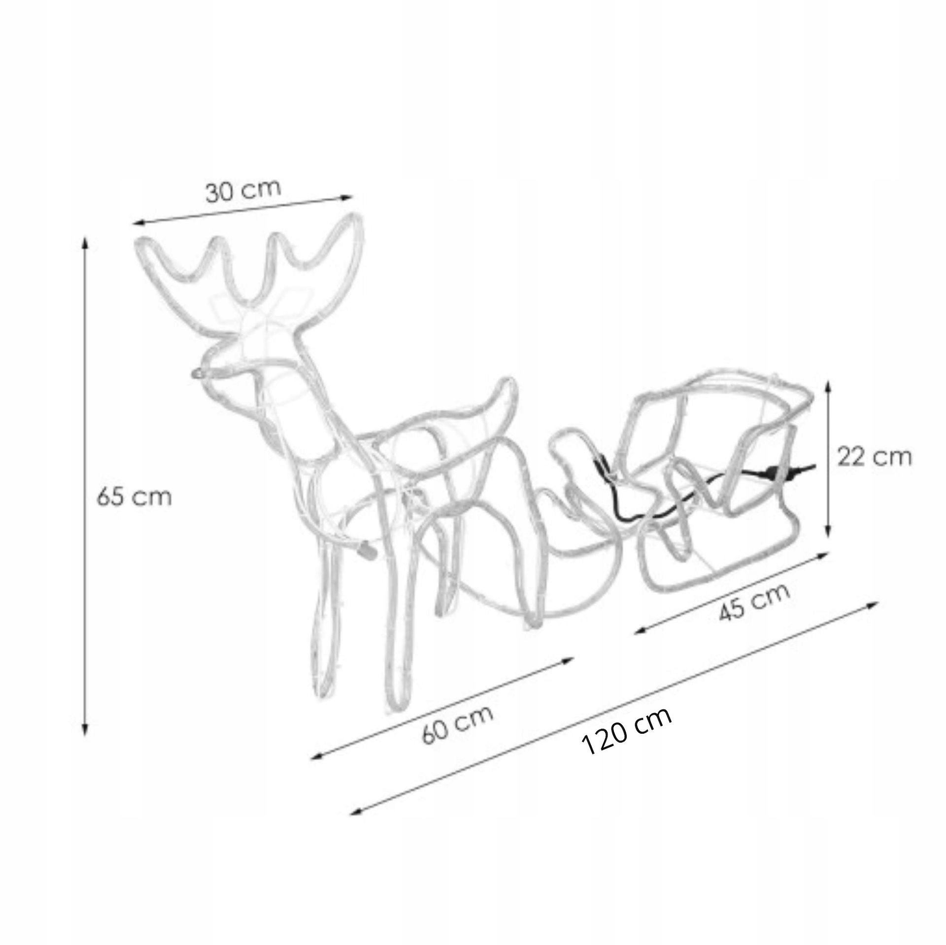 суцільна , гнучка кришка легкий ланцюг має майже 9 мм товщиною, а клас IP44 - це параметр, який вказує на те, що ви можете легко поставити оленів як вдома, так і поза терасою, Балконі. Набір також включає металеві оселедці, які ви можете прикріпити оленя та сани до землі. стабільна металева конструкція забезпечує незмінну форму встановлення.