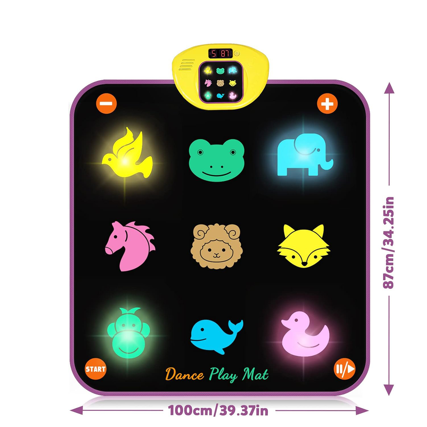 Удосконалений блискучий танцювальний килимок має 5 інтерактивних режимів гри та 3 рівні складності. Танцюйте під ритм музики відповідно до порад світлих візерунків. Прості шари та помірні ритми змусять вашу дитину любити танці та рух.