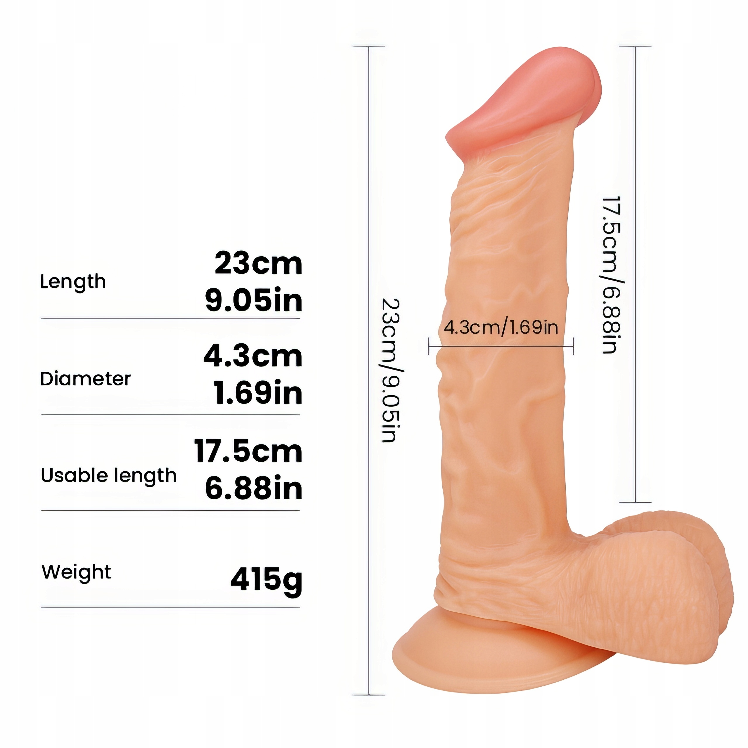 Міцна присоска забезпечить дуже стійке кріплення на гладкій поверхні, вона не відірветься навіть при різких рухах тіла в усіх напрямках. Фаллоімітатор виготовлений з безпечного для шкіри матеріалу, який не викликає алергічних реакцій і не містить шкідливих речовин. Цей матеріал характеризується еластичністю і м'якістю, схожою на справжню людську шкіру. Фалоімітатор згинається в усіх напрямках.