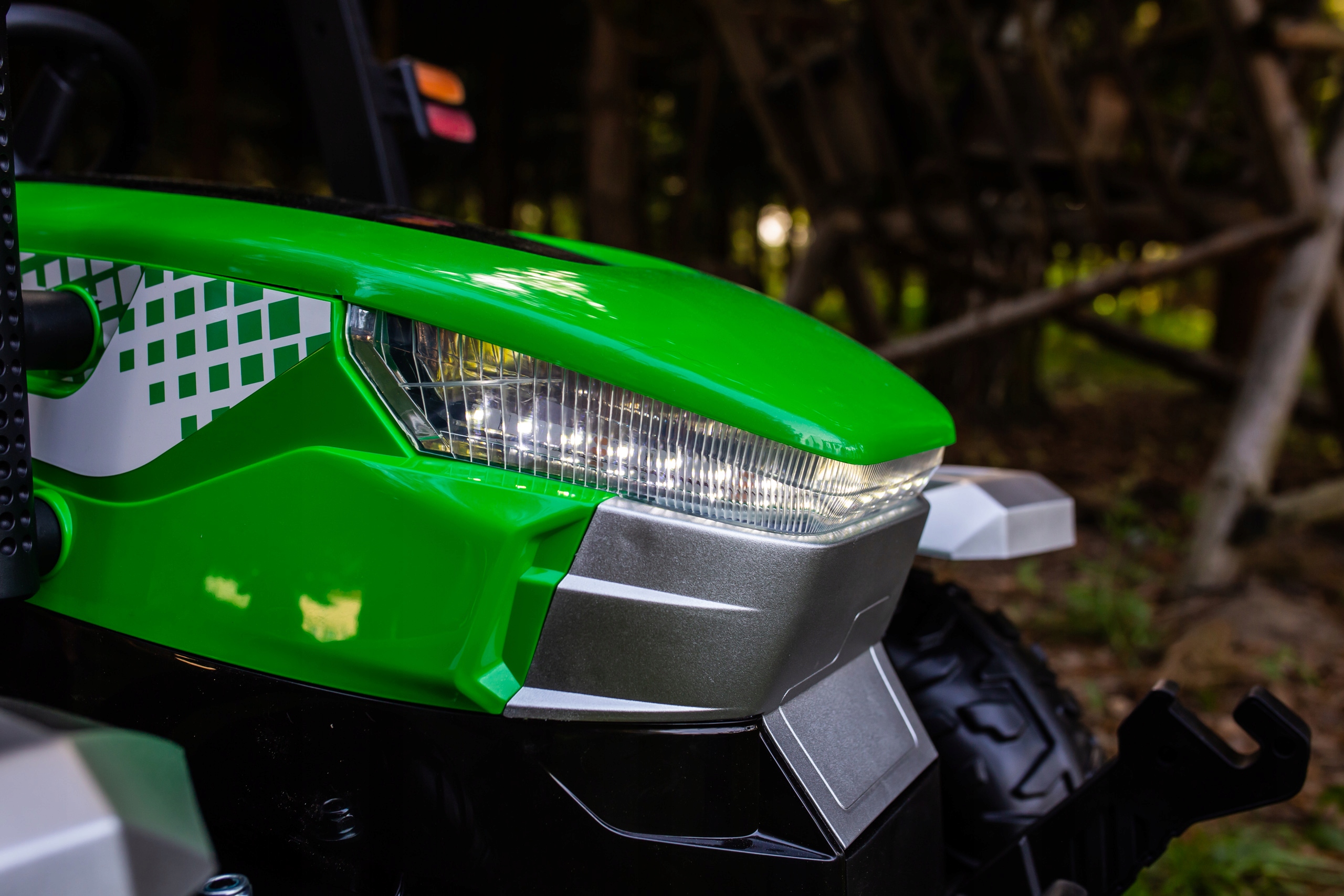 - трактор має переднє та заднє освітлення, яке можна вимкнути вимикачем