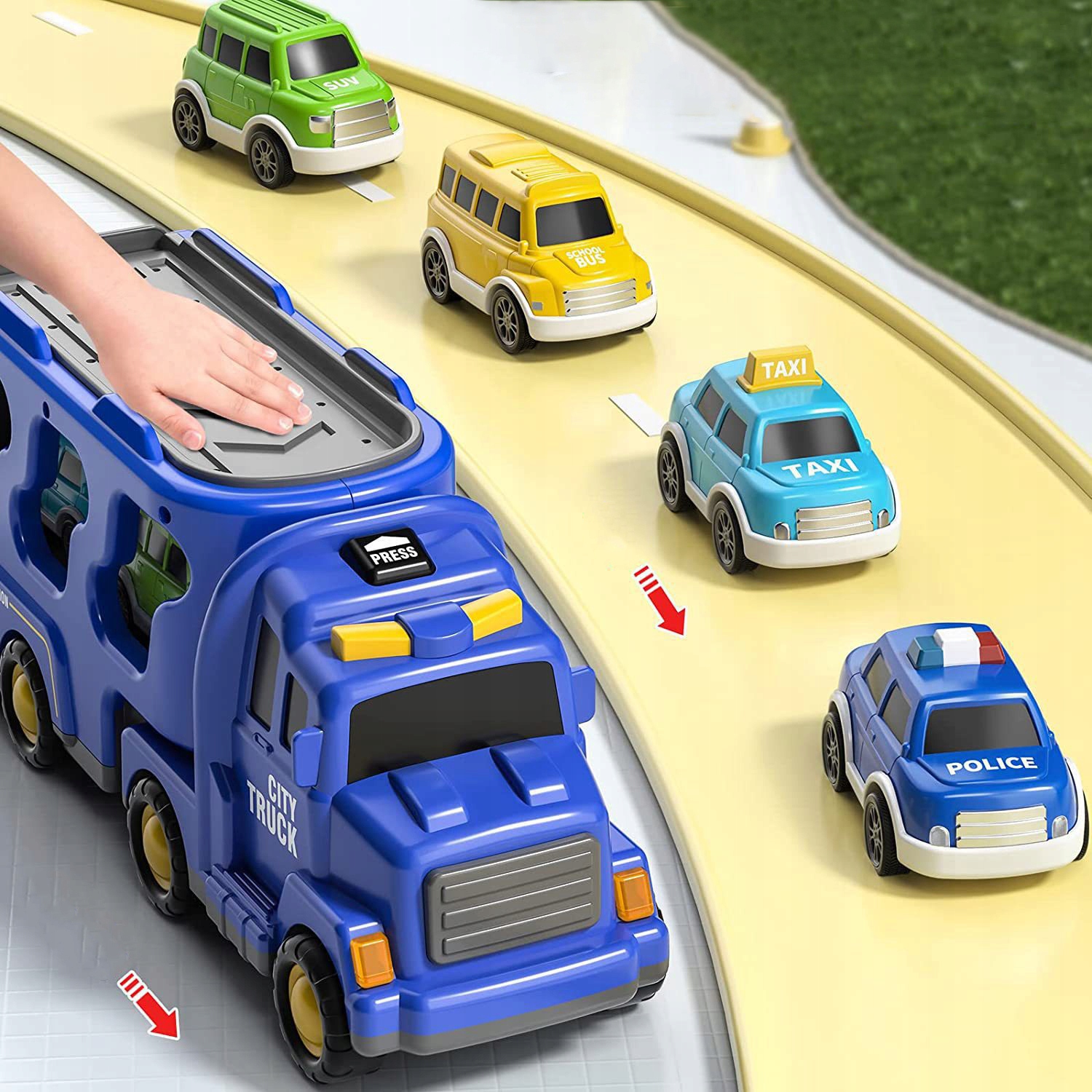 Цей набір включає великий транспортер та 4 маленькі машини, які ідеально підходять всередині, пропонуючи дітям повний та веселий досвід задоволення.