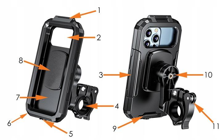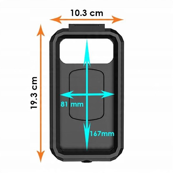 Завдяки використанню універсальних рішень наші тримачі чудово працюють на різних типах мотоциклів і підходять до різних моделей телефонів. Жорсткий чохол тримача має внутрішні розміри 167 x 81 x 10 мм.