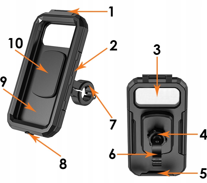 Завдяки використанню універсальних рішень наші тримачі чудово підходять для різних типів мотоциклів і підходять до різних моделей телефонів. Жорсткий чохол тримача має внутрішні розміри 167 x 81 x 10 мм.