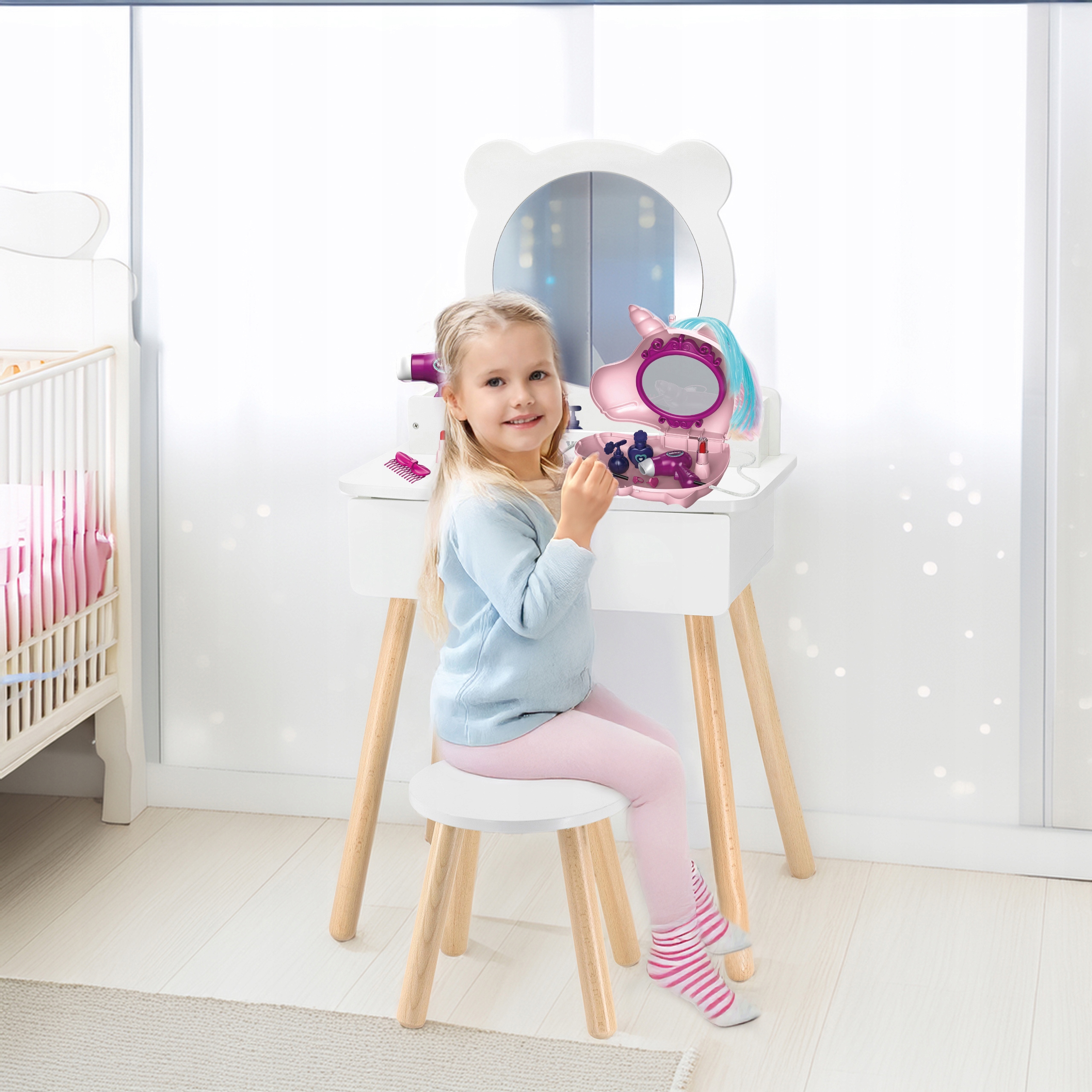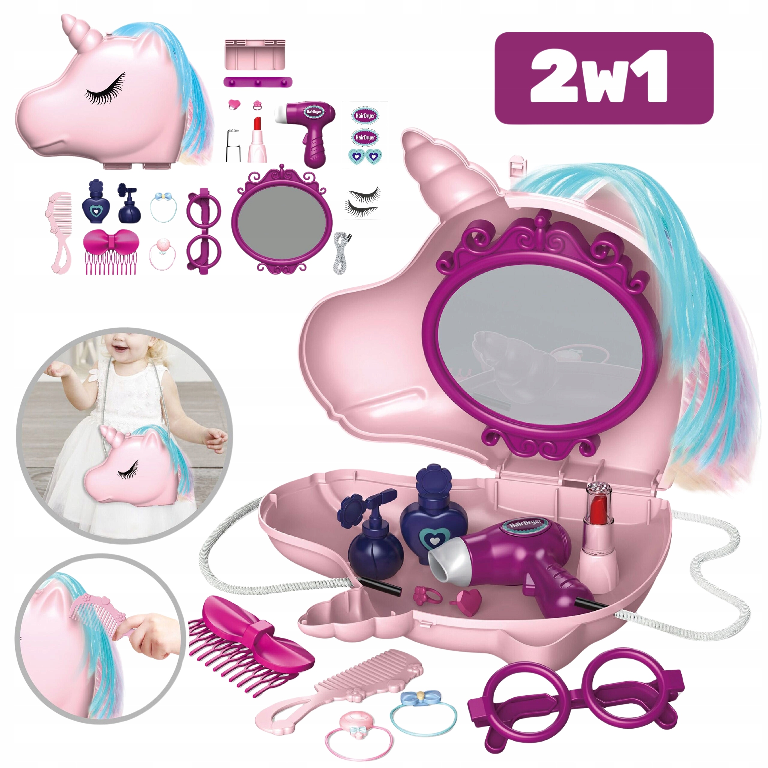 ВЕЛИКИЙ БІЛИЙ ТУАЛЕТНИЙ СТОЛИК З АКСЕСУАРАМИ СУМКА З ЄДИНОРОГОМ ПОДАРУНКОВА КОСМЕТИЧКА