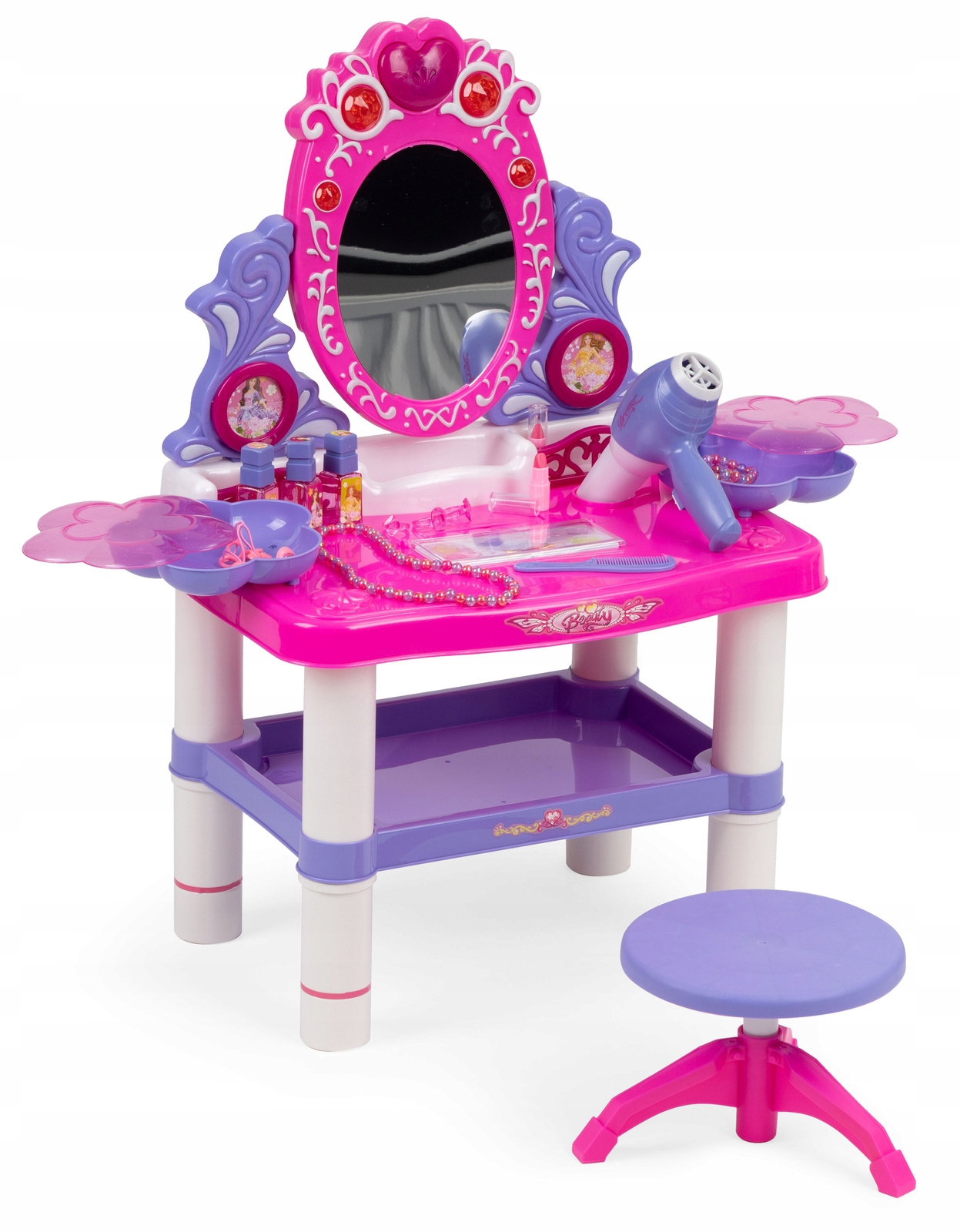 Великий туалетний столик для дітей, столові аксесуари, світло, звук, фен, прикраси