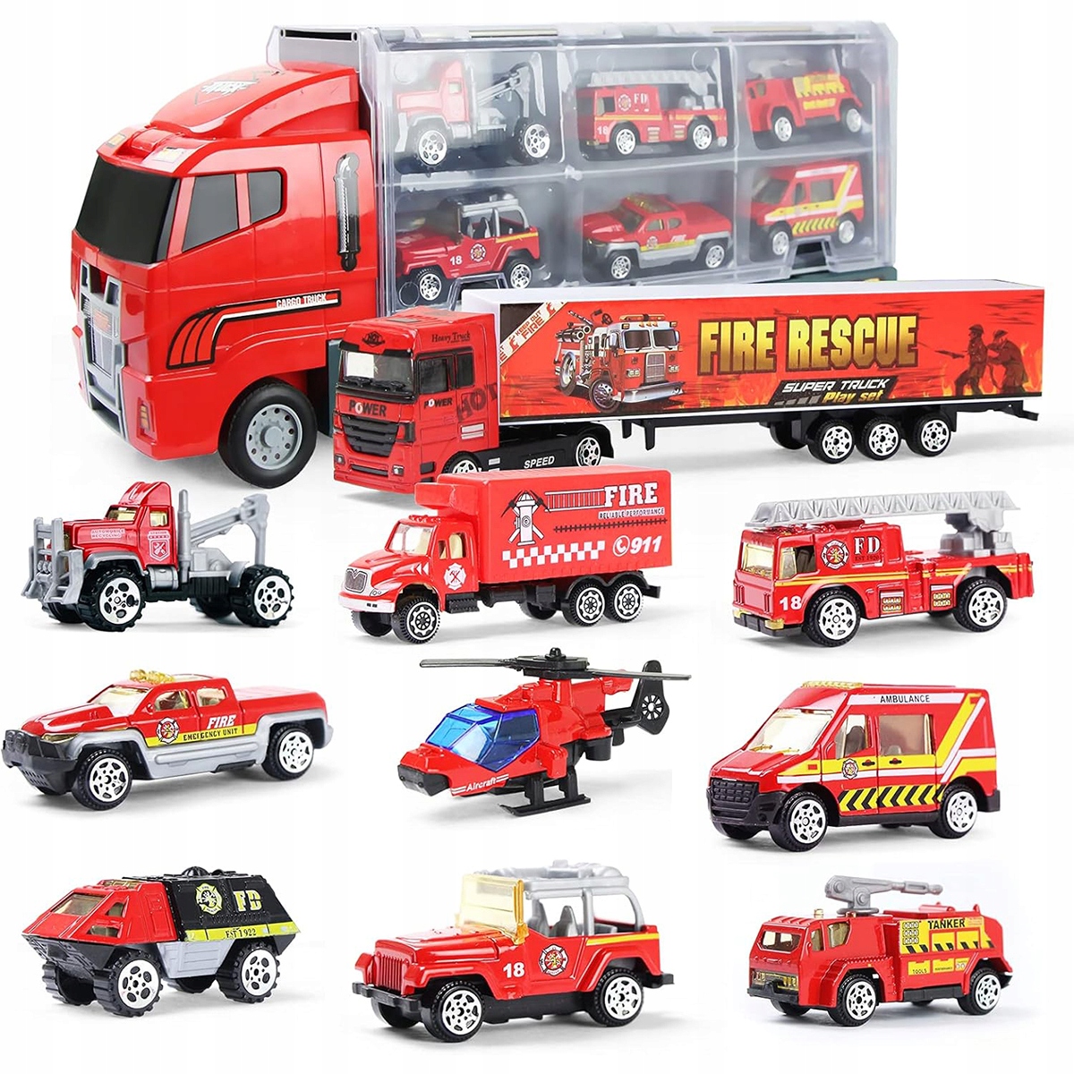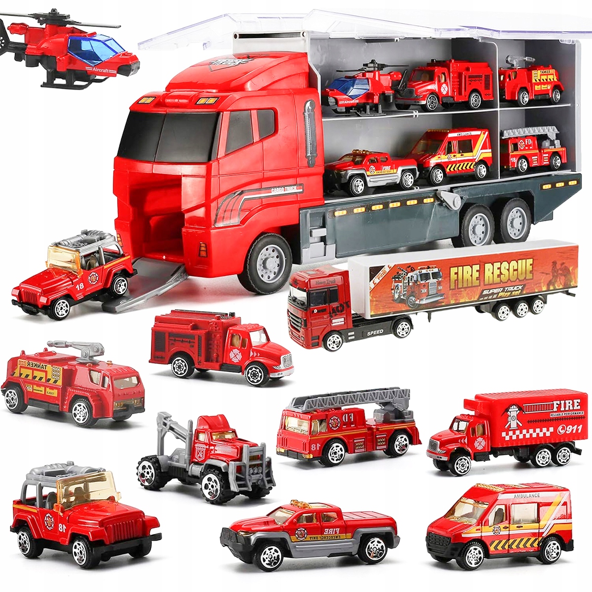 ⚡Catapult Play: передня частина великої пожежної машини оснащена функцією катапульти, яку можна завантажити в передню частину міні-автомобіля та відпустити, натиснувши кнопку викидання. Крім того, як великі вантажівки, так і мініатюрні автомобілі рухаються за інерцією та потребують лише м’якого поштовху.