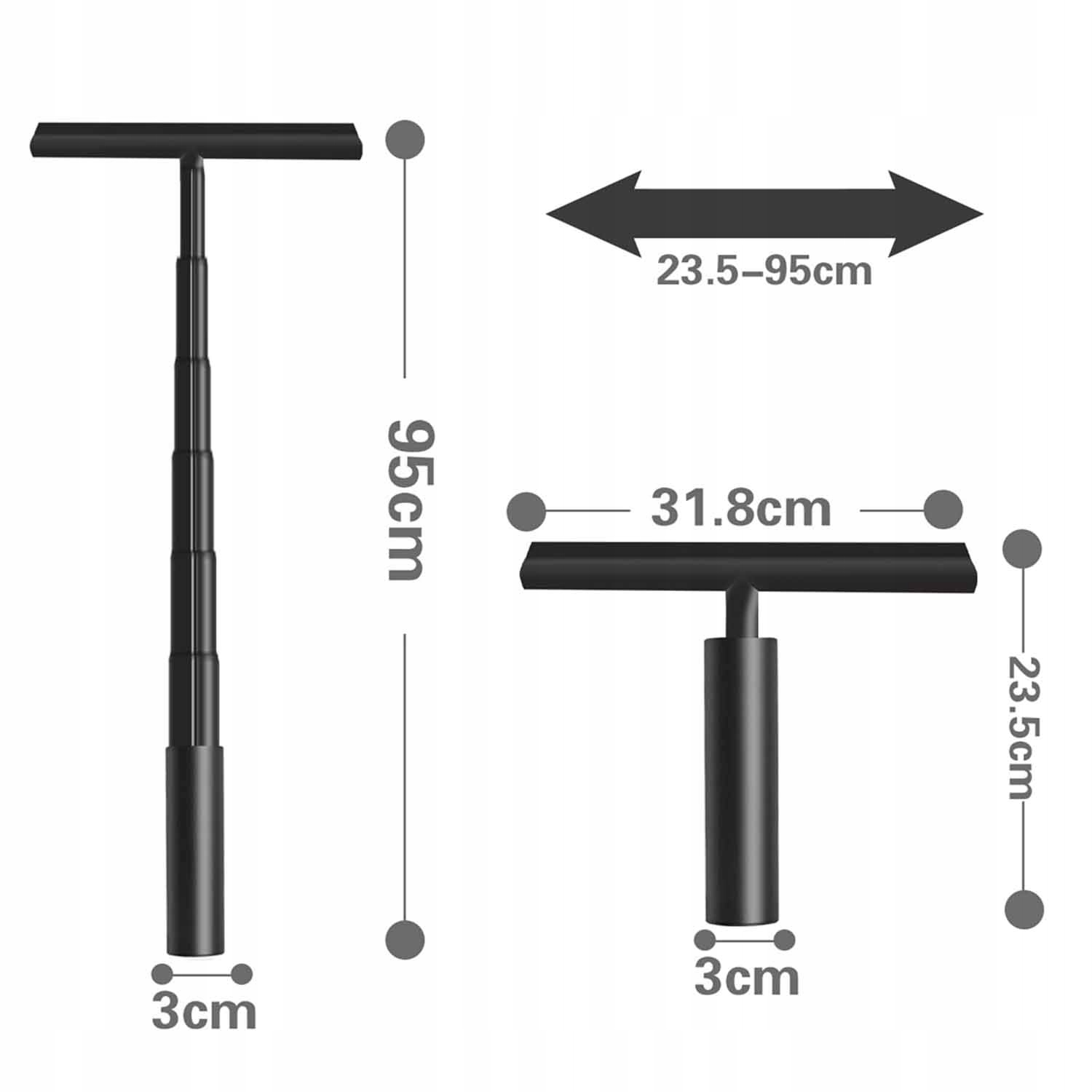 ✔️Універсальна адаптація: Чорний ракель для душу може подовжуватися від 23,5 см до 97 см, що дозволяє легко очищати навіть важкодоступні місця. Незалежно від того, малі вікна, великі скляні поверхні чи інші поверхні, наш ракель для душу можна легко використовувати всюди без необхідності використання додаткових інструментів.