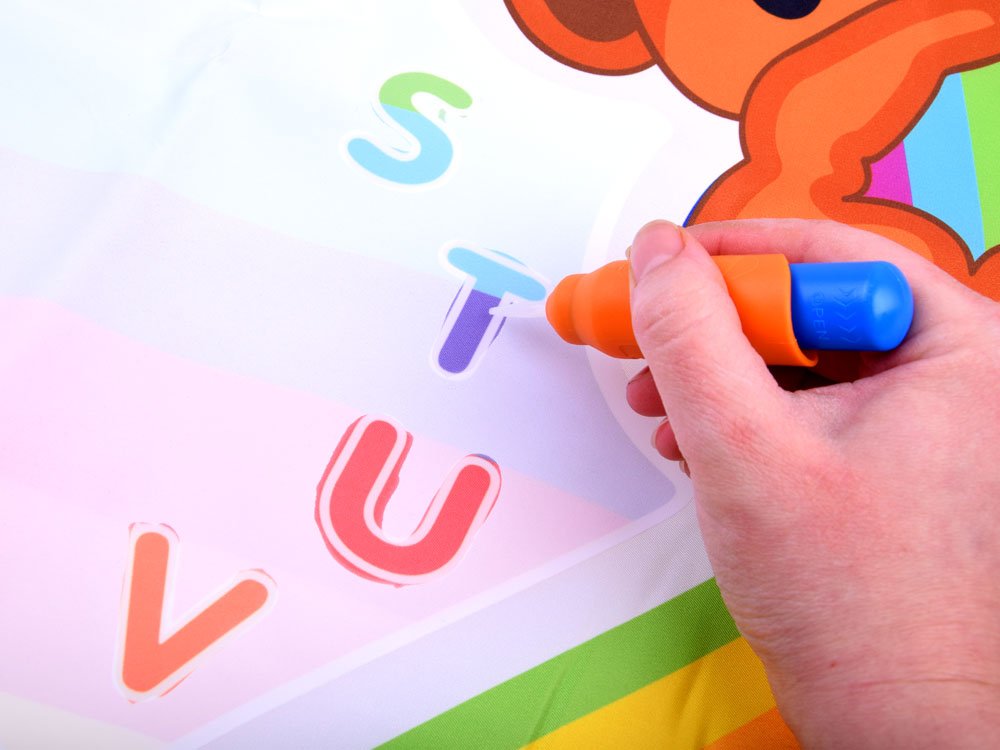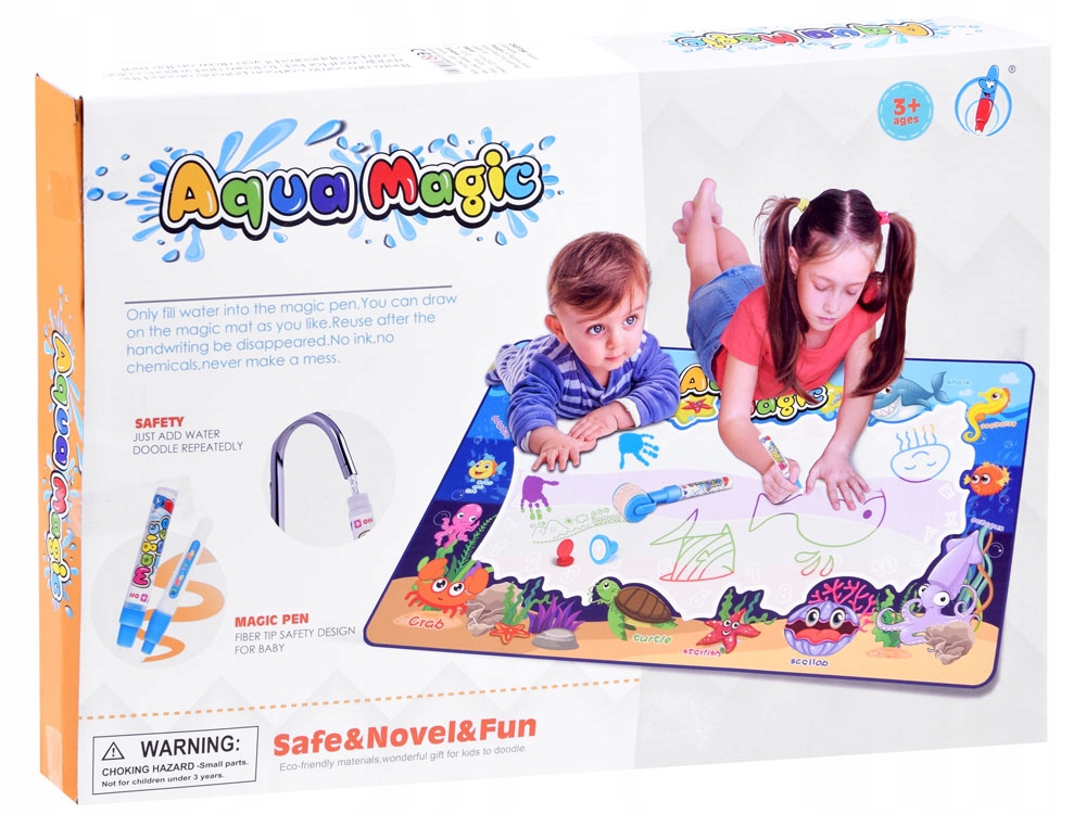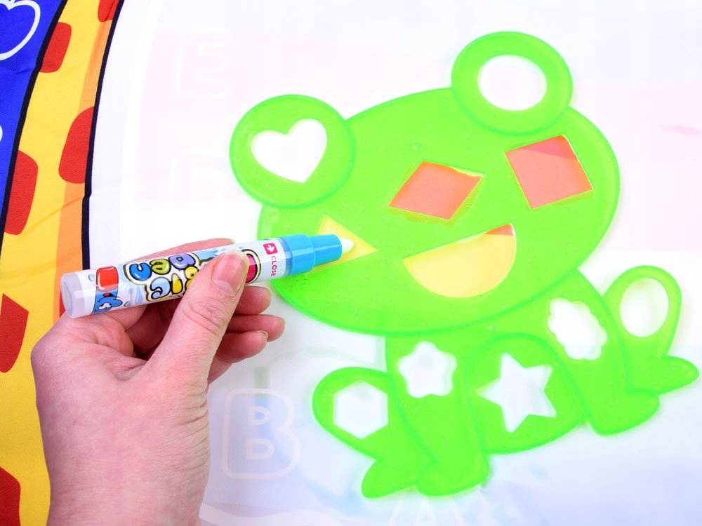 - Килимок для води розміром XXXL дозволить кожній дитині нескінченно створювати малюнки та картини. Барвистий водяний килимок розміром 80 х 100 см має барвистий фон, який створить барвисті малюнки. По краях килимка прихований алфавіт і цифри, тому дитина вивчатиме їх під час гри. Гра на килимку абсолютно безпечна, тому що все, що вам потрібно зробити, це налити воду в маркер і почати свою пригоду з малювання, малювання та письма. Набір додатково укомплектований штампами, формами для обведення, пензликом, валиком з візерунками, і все! Немає шансів занудьгувати: - килимок 100 х 80 см - маркер з тонким грифелем - пензлик - штампи - валик з візерунком - штемпельник - 4 шт. x шаблони з різноманітними візерунками (фрукти, овочі, небо/погода, транспортні засоби) - шаблон жаби з фігурками - шаблон черепахи з цифрами - пінопластовий килимок з фігурками - книжка-розмальовка Фантастичний творчий набір для кожної дитини, яка не любить нудьгувати . Барвистий килимок на водній основі дозволить нескінченно створювати малюнки. Просто налийте води в ручку, тримач для марок, пофарбуйте та поставте штамп. І якщо у вас не вистачає місця на килимку, просто зачекайте деякий час, поки малюнки висохнуть, і почніть грати з початку. Магазин «Джокомісіада» пропонує широкий вибір товарів для творчості для дітей. Іграшка упакована в кольорову упаковку, ідеально підходить для подарунка.