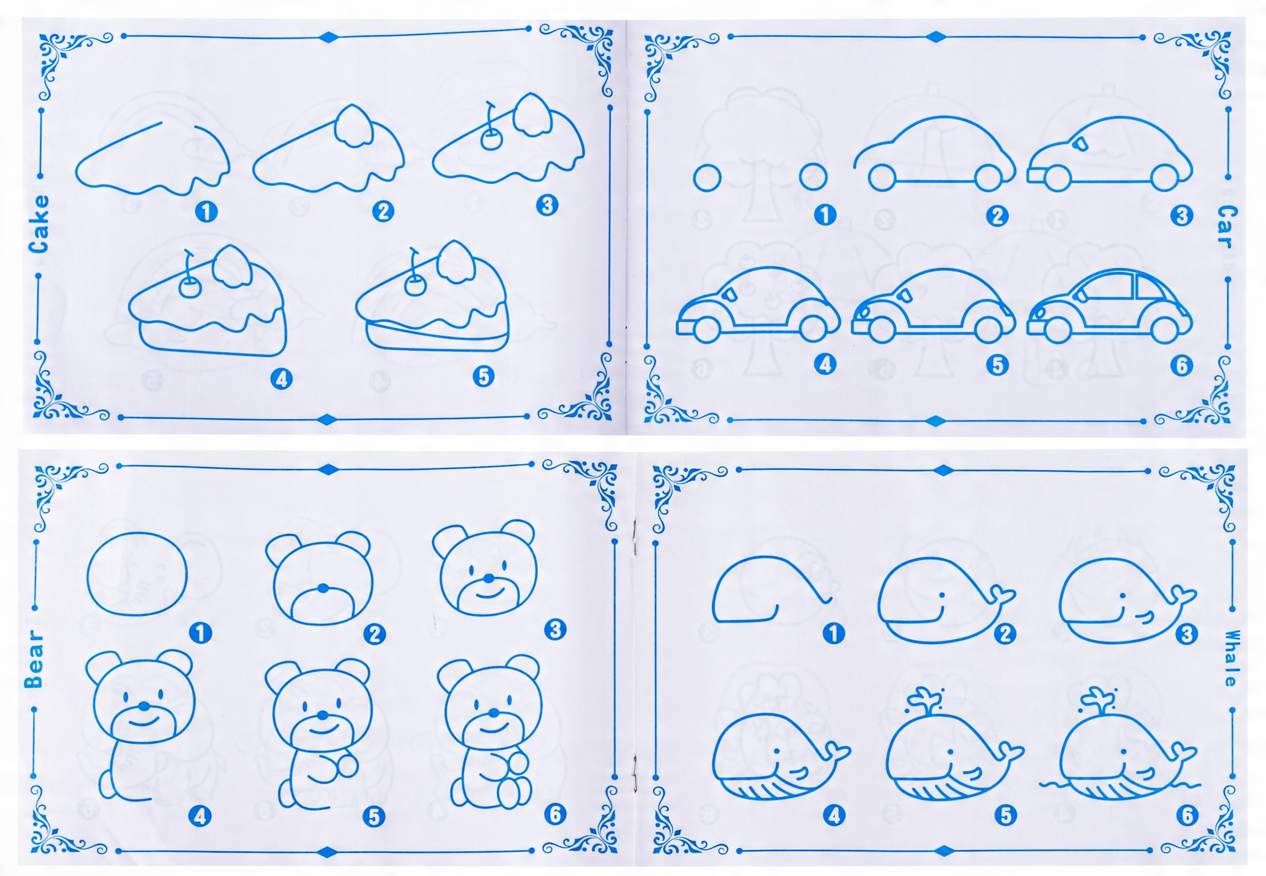 У набір також входять покрокові графічні інструкції, як розмалювати плюшевого ведмедика, машинку або кілька інших картинок. Інструкції можуть бути використані як натхнення, а як тільки дитина ознайомиться з усіма викрійками, вона неодмінно почне свої нові проекти та малюнки :)