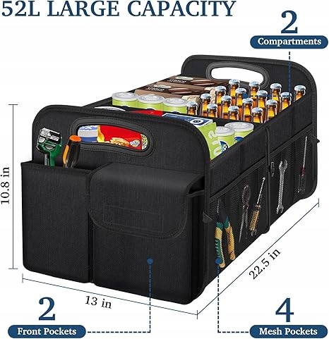 - 【Складний простір для зберігання для багажника】: Організатор для багажника для позашляховиків, що складають багато відсіків зі знімним розділом, може скласти розмір, який вам потрібен всередині автомобіля, і складіть при використанні. Складання та портативні. НЕ -СЛІП】: Липульна анти -Скліп, щоб він залишався на місці і не переміщується і не розливається від організатора багажника під час руху. Підходить для всіх видів транспортних засобів, таких як вантажівки, позашляховики, фургони, джипи, машини тощо, і є фантастичним для транспортування та організації їжі, іграшок, спортивного обладнання, інструментів та інших у багажнику. Усуньте безлад у багажнику завдяки цьому організатору автомобіля.