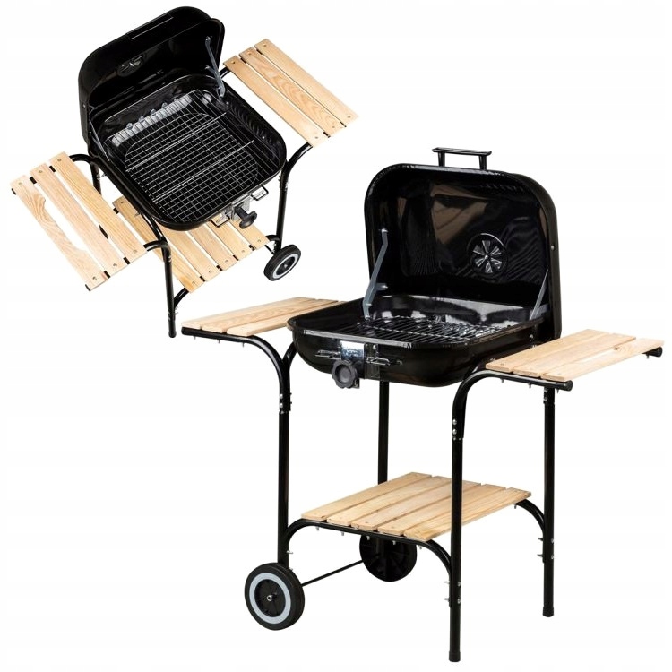 Дерев’яні полиці з обох боків гриля та велика полиця під ним є практичним рішенням для зберігання інструментів для барбекю, табличок або аксесуарів. Це полегшення робить все необхідне - це завжди під рукою, і ви можете зосередитись на задоволенням на грилі.