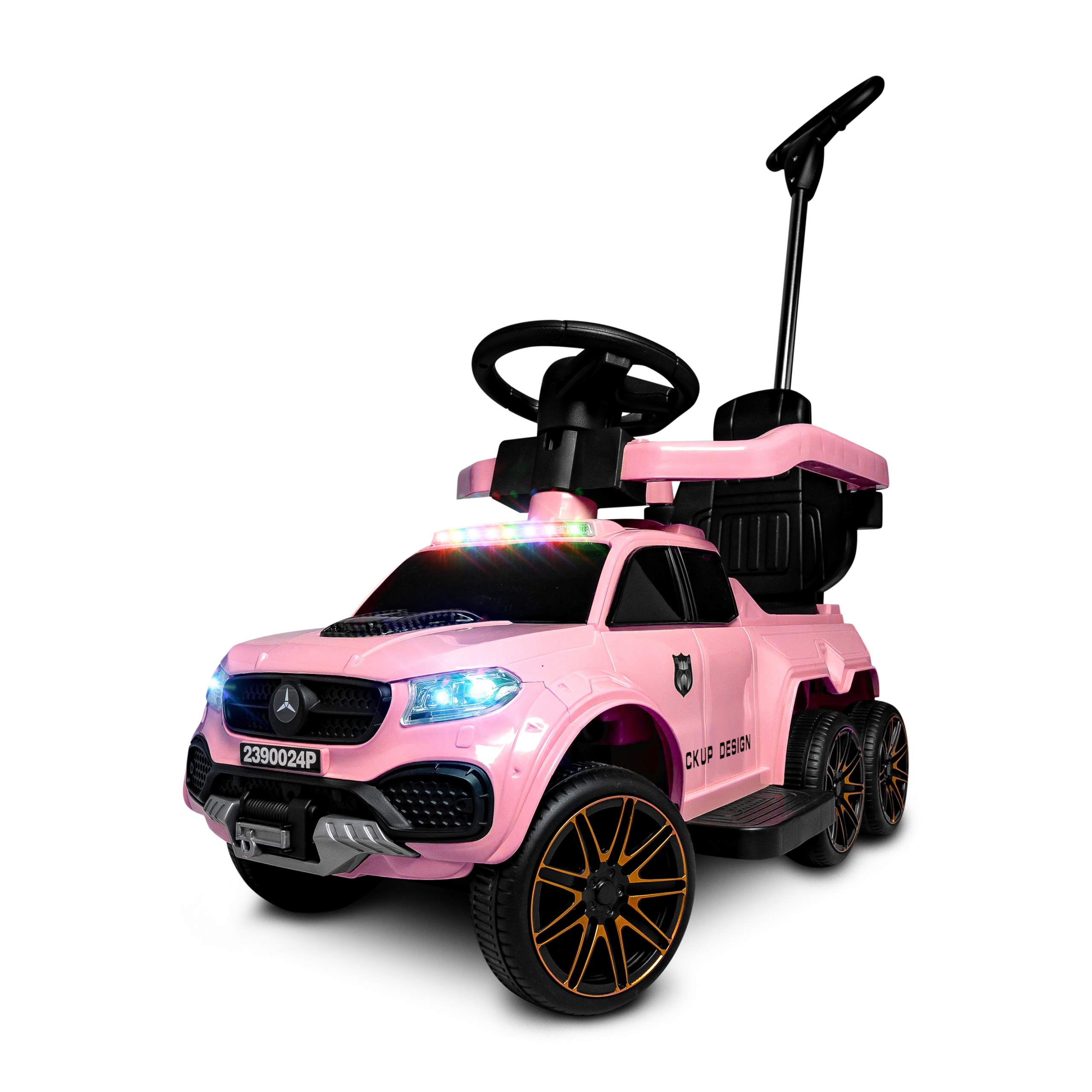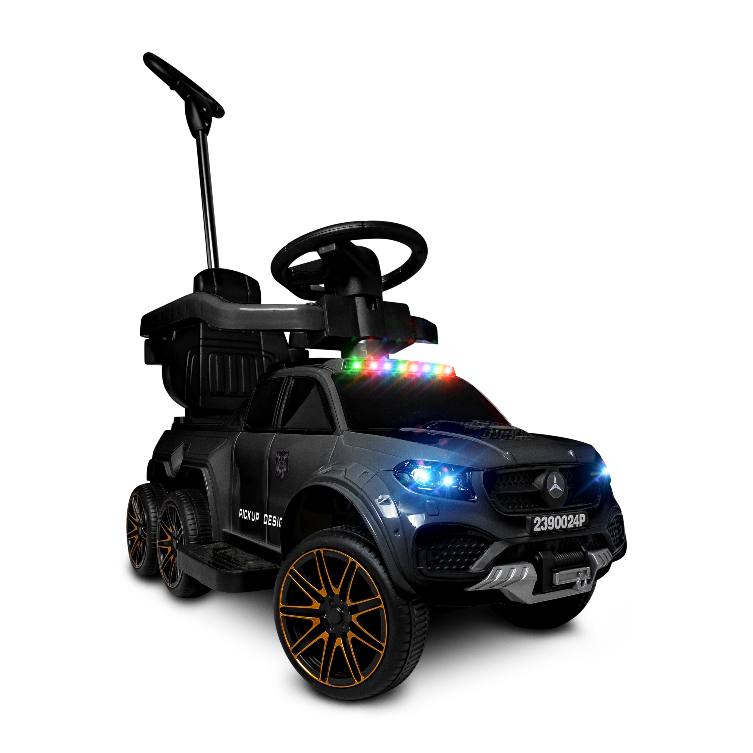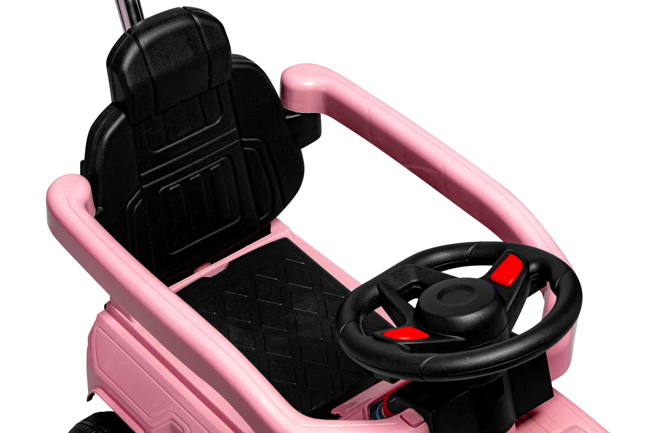 Дуже велика 6 колісна їзда , оснащена світлодіодом та звуковими ефектами на музичній панелі. Зручна та довговічна сталь ручка обробки та кручення для батьків. Сучасний дизайн Дизайн пікапів