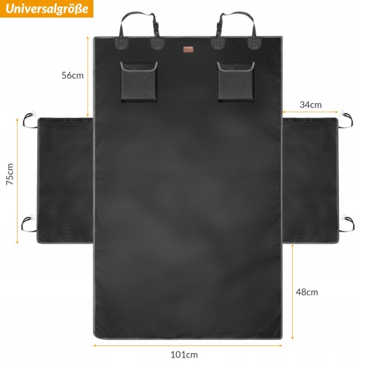 Завдяки універсальним розмірам 180 x 170 см, чорну автомобільну кришку можна ідеально вмістити в будь-який багажник, від маленьких автомобілів до позашляховиків.