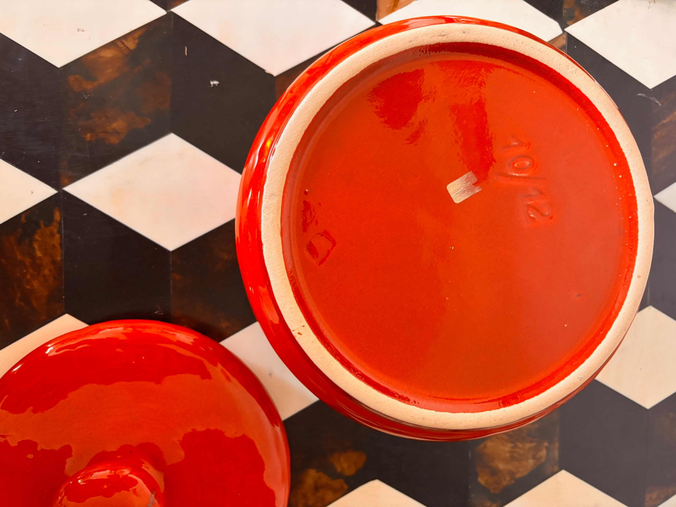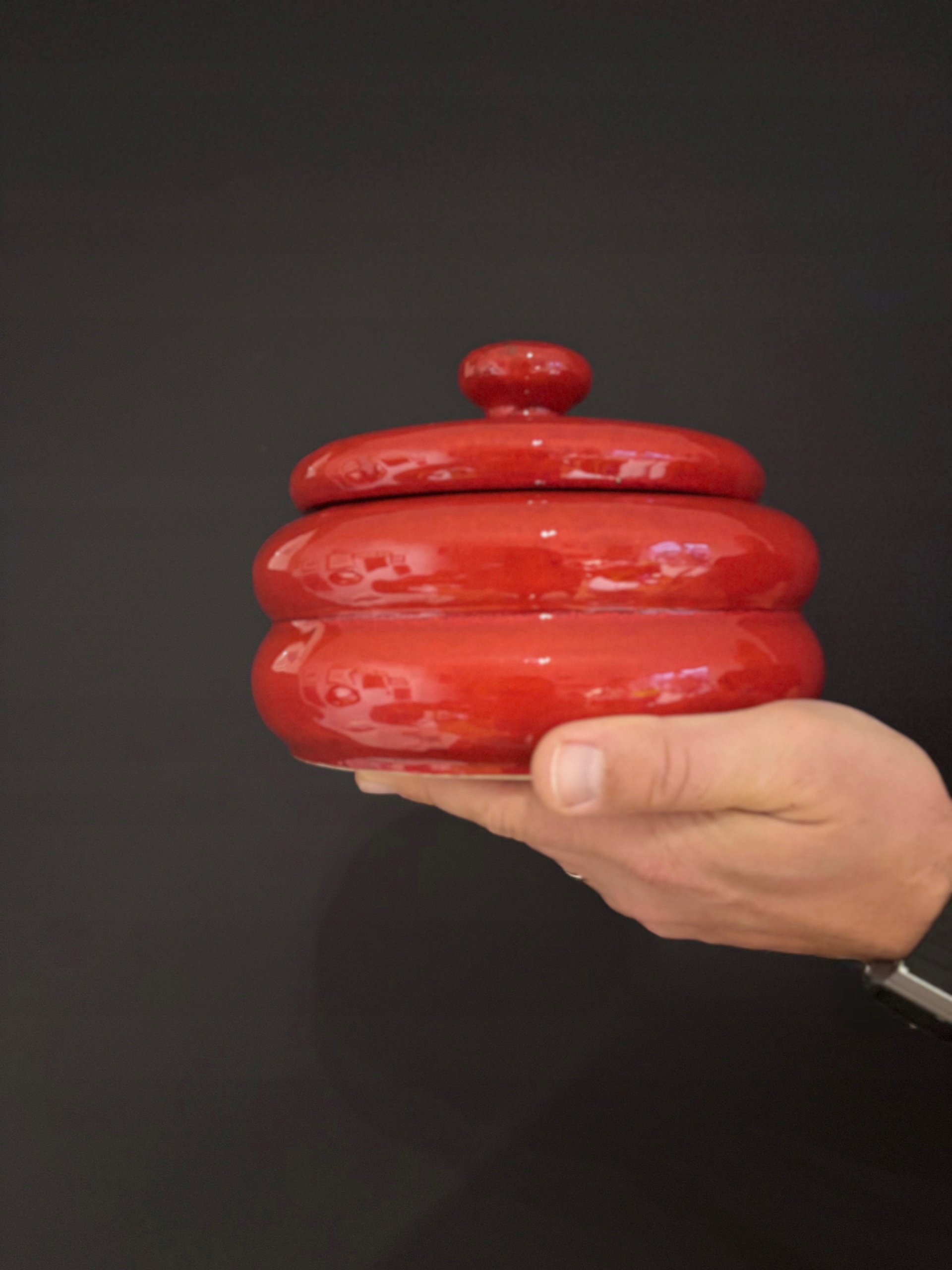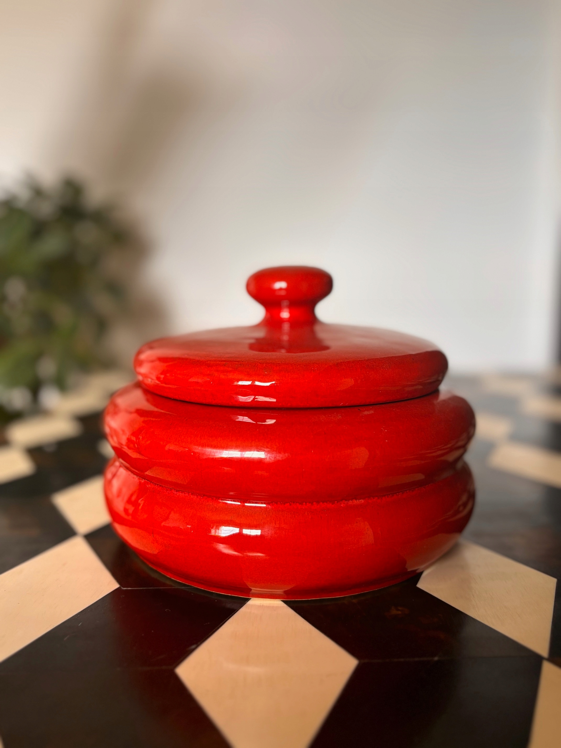 Великий закритий керамічний контейнер 1960-х років, вінтажно-червоний